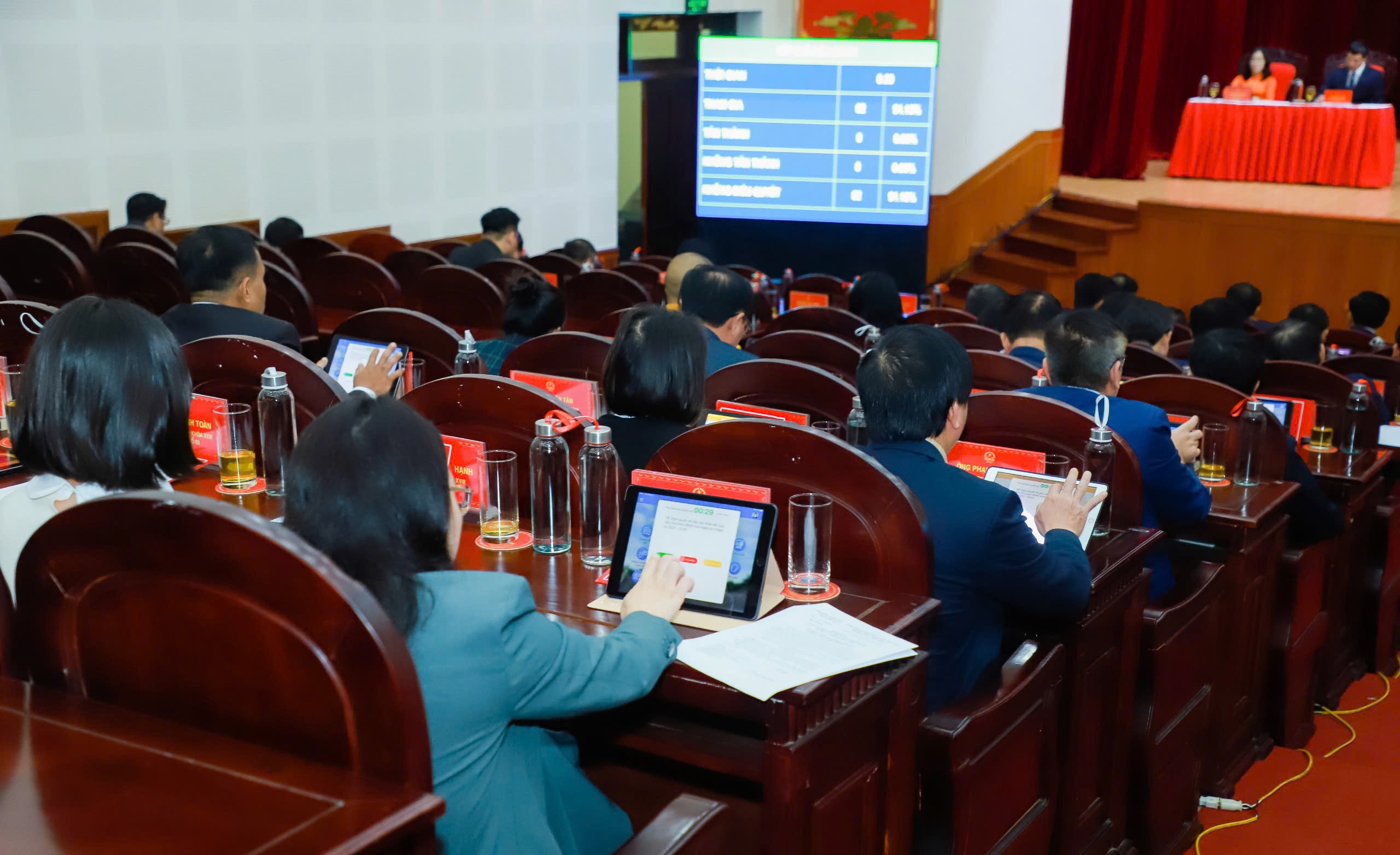 Thay vì sử dụng tài liệu in như trước đây, mỗi đại biểu được trang bị máy tính bảng để truy cập đầy đủ các nội dung của kỳ họp, từ báo cáo, tờ trình đến dự thảo nghị quyết. Trên thiết bị cá nhân, đại biểu có thể đăng ký phát biểu, tham gia tranh luận và thực hiện biểu quyết chỉ với vài thao tác đơn giản. Kết quả biểu quyết được hệ thống tự động tổng hợp và hiển thị tức thì tại hội trường, thay thế hoàn toàn phương thức giơ biển truyền thống, bảo đảm tính chính xác và minh bạch.