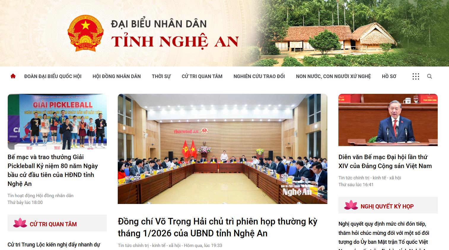 Cùng với việc ứng dụng các phần mềm nghiệp vụ, Trang Thông tin điện tử Đại biểu Nhân dân tỉnh Nghệ An (https://dbndnghean.vn) được xác định là kênh thông tin chính thống, quan trọng của cơ quan dân cử. Trang đã được đổi mới mạnh mẽ về nội dung và hình thức, tăng cường thông tin về hoạt động của HĐND, Đoàn ĐBQH tỉnh; công tác tiếp xúc cử tri, giải quyết kiến nghị; hoạt động giám sát, ban hành nghị quyết, đồng thời phản ánh các hoạt động chính trị, kinh tế, xã hội của tỉnh và chia sẻ kinh nghiệm hoạt động của cơ quan dân cử trong cả nước.
