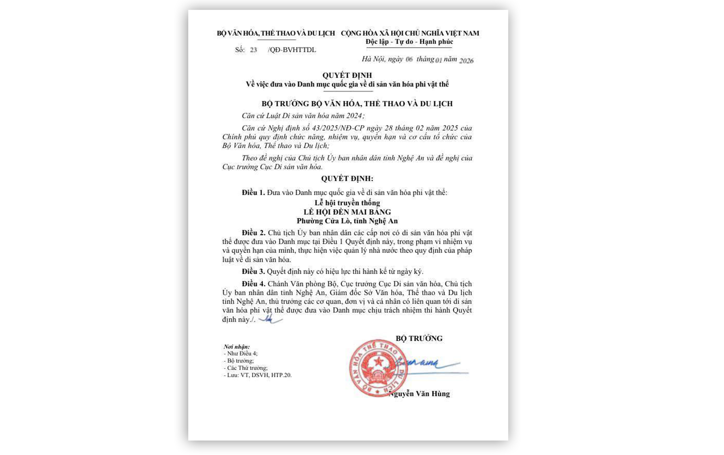 Di sản, nó không nằm trong tờ giấy quyết định số 23. Nó nằm trong lồng ngực của người dân. Nó nằm trong tiếng trống hội thùm thụp vang lên mỗi tháng Hai. Nó nằm trong câu chuyện ông kể cho cháu nghe về sáu cụ tổ đi bè mảng mở đất.