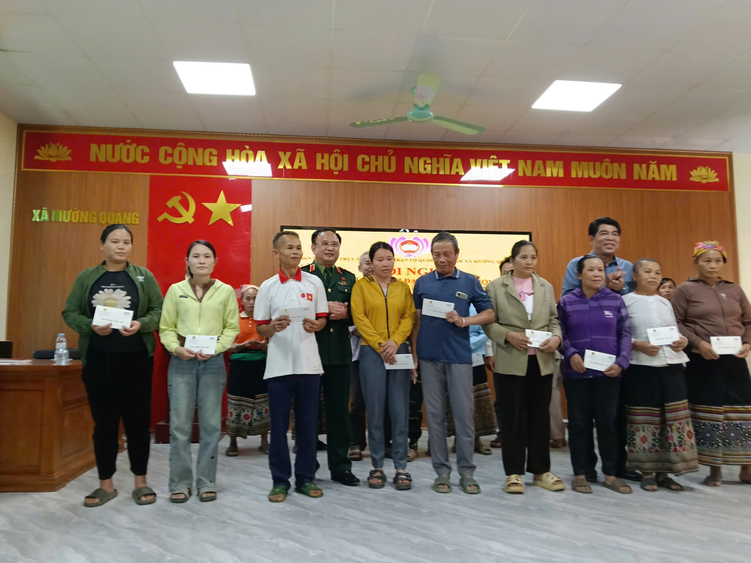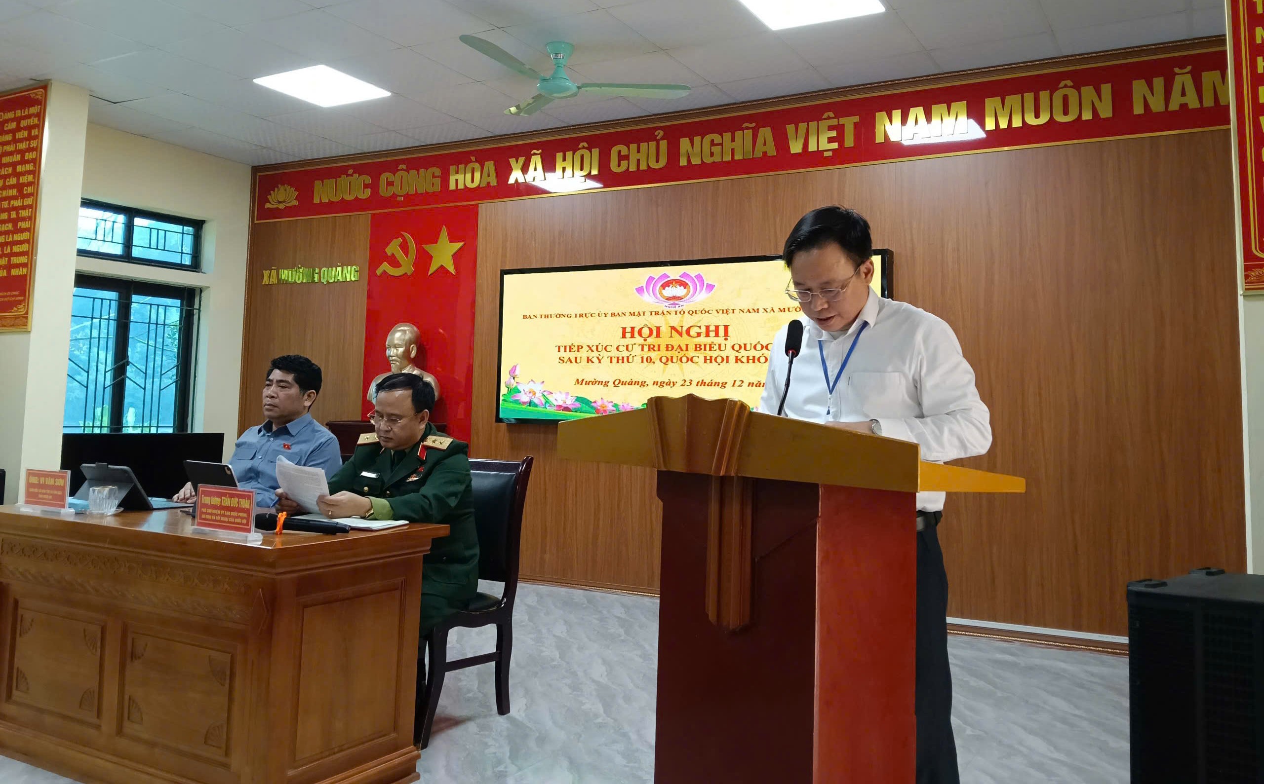Tham gia hội nghị tiếp xúc cử tri có lãnh đạo và đại diện lãnh đạo các sở: Nội vụ, Nông nghiệp và Môi trường, Xây dựng, cùng đông đảo cử tri xã Mường Quàng.