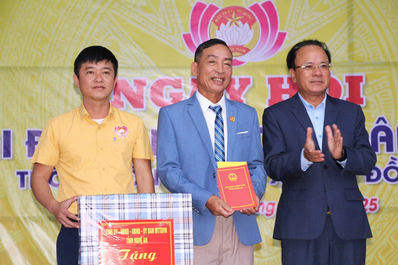 Nhân dịp này, đồng chí Nguyễn Nam Đình đã trao quà của Tỉnh ủy, HĐND, UBND và Ủy ban MTTQ tỉnh tặng thôn Tường Đình và 10 hộ gia đình có hoàn cảnh khó khăn. Ủy ban MTTQ xã Đại Đồng cũng trao quà cho thôn và các hộ gia đình tiêu biểu.