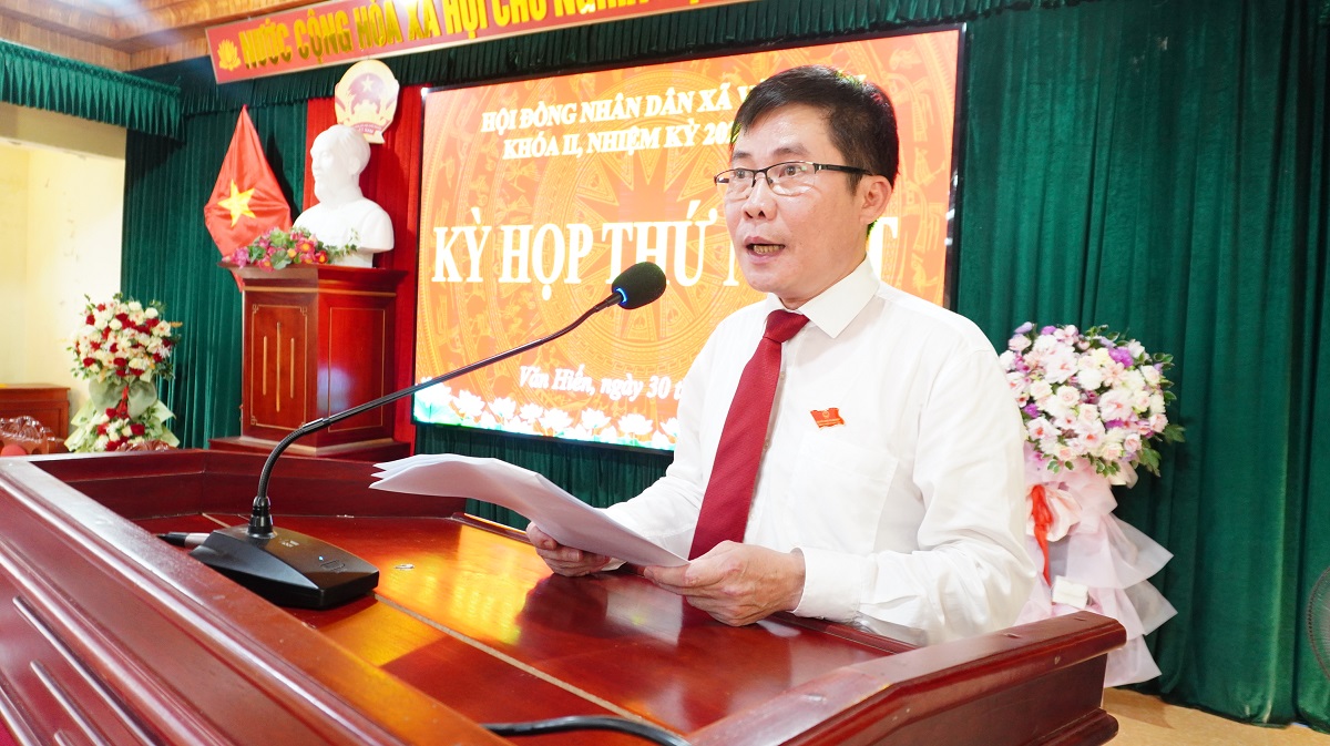 Nhiệm vụ trọng tâm của kỳ họp thứ nhất là xem xét, quyết định công tác nhân sự, kiện toàn bộ máy chính quyền xã nhiệm kỳ mới; dưới sự điều hành dân chủ, trách nhiệm, HĐND xã Văn Hiến đã bỏ phiếu kín bầu các chức danh chủ chốt với sự tập trung, tín nhiệm rất cao, trong đó đồng chí Nguyễn Tất Hoài Hiệp - Bí thư Đảng ủy tiếp tục được bầu giữ chức Chủ tịch HĐND xã khóa II, bà Trần Thị Thu Hiền giữ chức Phó Chủ tịch HĐND xã, ông Trần Văn Hiến - Phó Bí thư Đảng ủy giữ chức Chủ tịch UBND xã; đồng thời hoàn thành việc bầu các Trưởng ban HĐND, các Phó Chủ tịch UBND và các Ủy viên UBND xã.