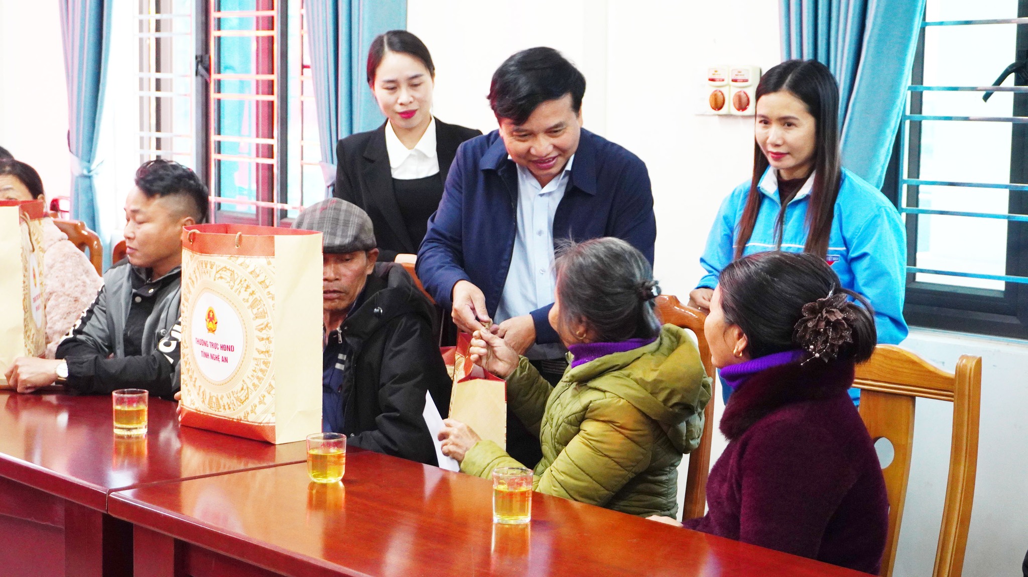 Đồng chí Phó Chủ tịch HĐND tỉnh đã trao tặng 20 suất quà cho các hộ nghèo; mỗi suất quà bao gồm 1 triệu đồng tiền mặt và quà hiện vật trị giá 200.000 đồng. Đồng chí đã trao trực tiếp các suất quà tại xã Vân Du và đề nghị Đảng ủy, Ủy ban Mặt trận Tổ quốc xã Vân Tụ chuyển đến tận tay các hộ gia đình có hoàn cảnh khó khăn trên địa bàn.