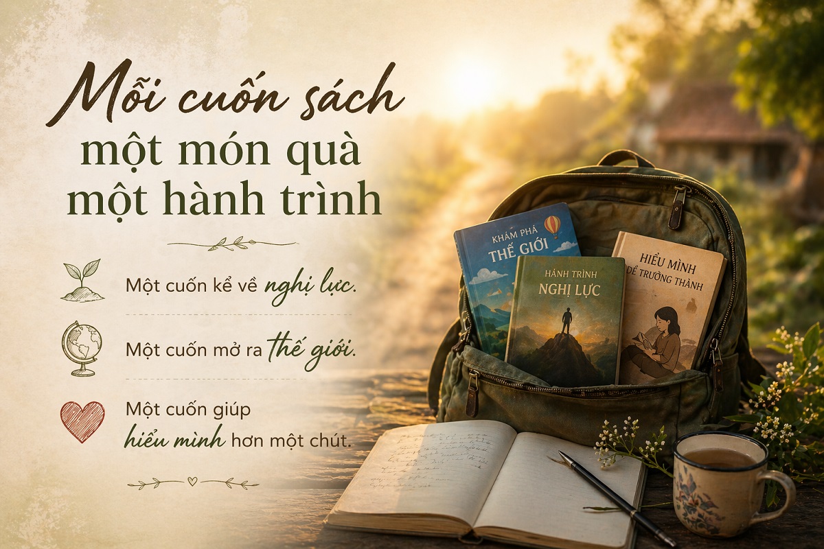 Nhiều chương trình thiện nguyện đã làm rất tốt. Những phong bì trao đi không chỉ là tiền, mà là tấm lòng. Nhưng nếu trong mỗi lần trao ấy, có thêm một vài cuốn sách, đặt vào tay các em, thì câu chuyện sẽ đầy hơn.