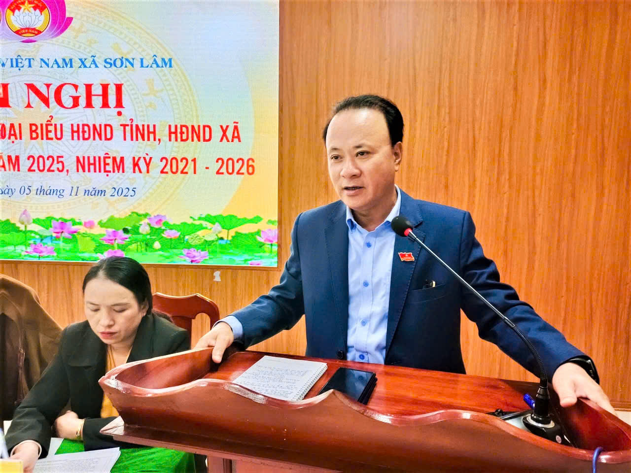 Phát biểu tại hội nghị, ông Nguyễn Nam Đình – Phó Chủ tịch Thường trực HĐND tỉnh ghi nhận và biểu dương tinh thần dân chủ, trách nhiệm của cử tri xã Sơn Lâm. Ông nhấn mạnh, HĐND các cấp luôn coi trọng việc lắng nghe ý kiến từ cơ sở, xem đây là kênh thông tin quan trọng để phản ánh tâm tư, nguyện vọng của Nhân dân đến các cơ quan chức năng. Ông đề nghị cấp ủy, chính quyền địa phương tiếp tục tập trung tháo gỡ khó khăn trong phát triển kinh tế nông nghiệp; hoàn thiện hệ thống giao thông; tăng cường công tác quản lý đất đai và giải phóng mặt bằng; quan tâm hơn đến chính sách hỗ trợ đồng bào tái định cư, phát triển sinh kế, nâng cao chất lượng giáo dục và y tế, thực hiện tốt các chương trình an sinh xã hội.