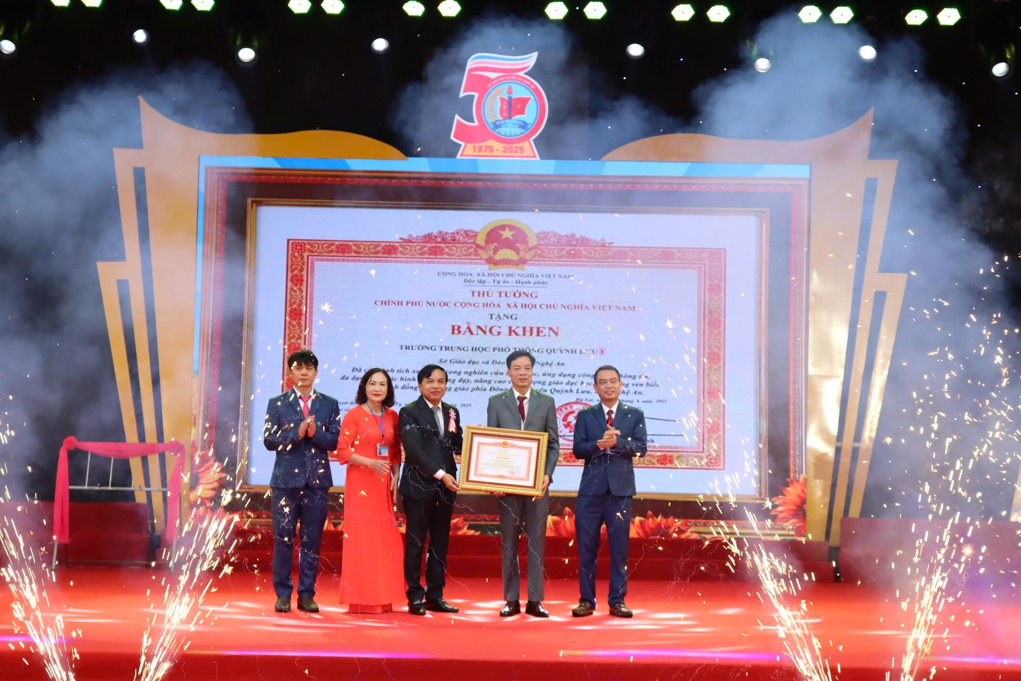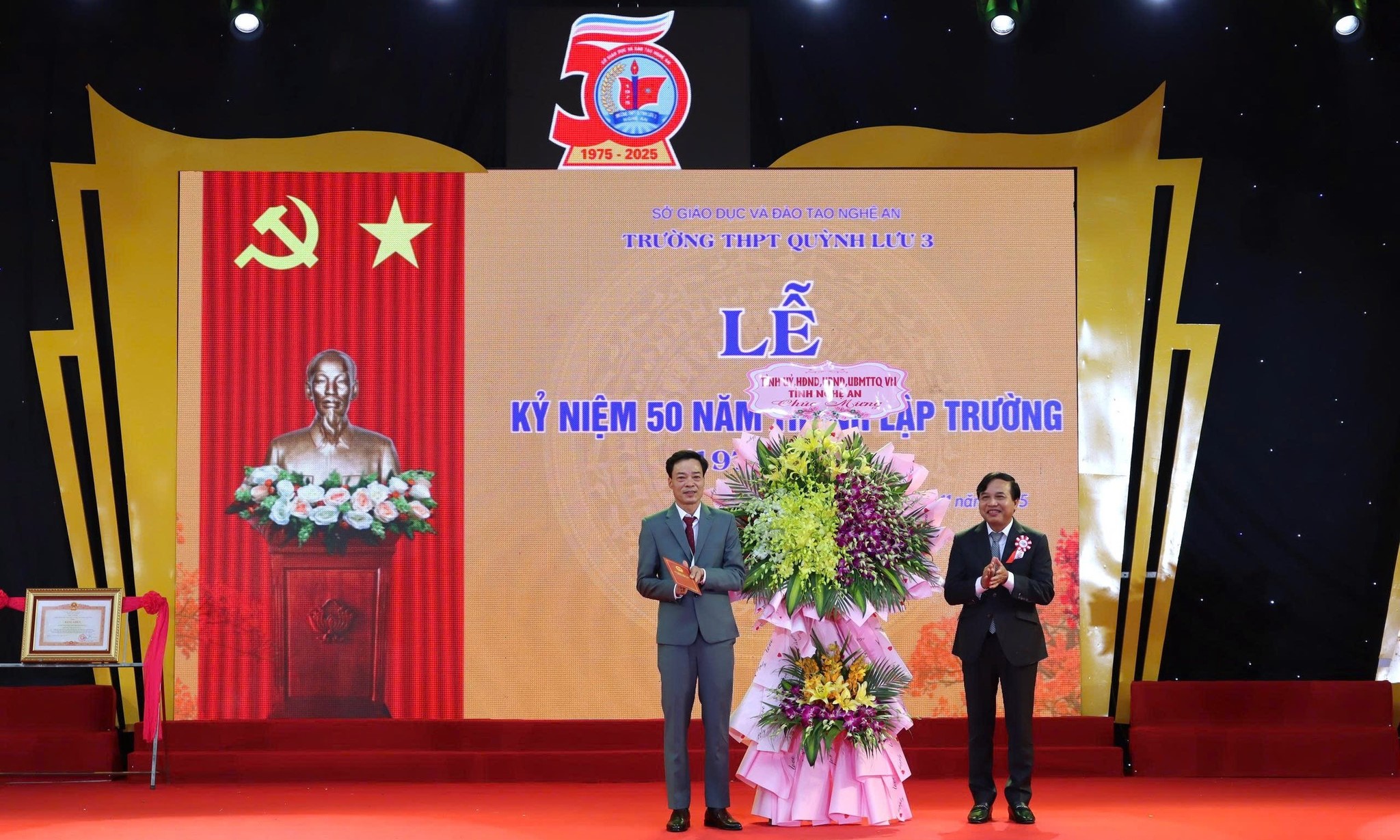 Thay mặt lãnh đạo Tỉnh Nghệ An, tôi trân trọng biểu dương và tri ân những đóng góp to lớn của các thế hệ thầy cô giáo, của cán bộ, nhân viên và học sinh Trường THPT Quỳnh Lưu 3 trong suốt 50 năm qua; trân trọng cám ơn các cấp ủy Đảng, chính quyền, Nhân dân địa phương, các thế hệ phụ huynh, các cơ quan đơn vị, cá nhân đã luôn đồng hành, ủng hộ, chung tay xây dựng, để Trường THPT Quỳnh Lưu 3 có được thành tích và niềm vinh dự, tự hào hôm nay.