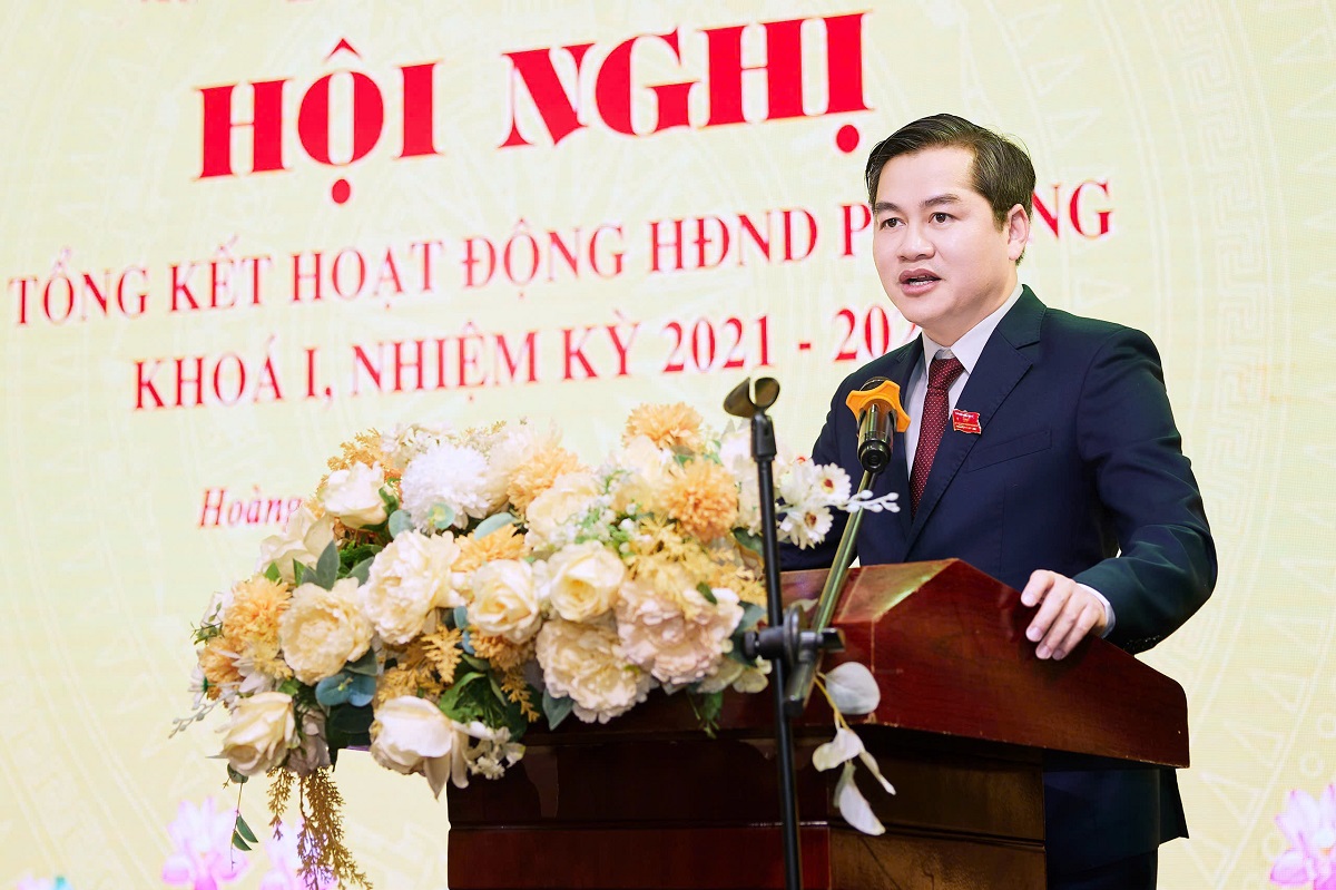 Phát biểu tại Hội nghị, đồng chí Nguyễn Nam Đình, Phó Chủ tịch Thường trực HĐND tỉnh ghi nhận, đánh giá cao những nỗ lực và kết quả HĐND phường Hoàng Mai đạt được trong nhiệm kỳ đầu tiên trong bối cảnh đất nước và tỉnh có nhiều thay đổi, vừa là thời cơ, vừa là khó khăn, thách thức; hoạt động của HĐND đã đi vào nề nếp, có nhiều đổi mới về nội dung và phương thức. Vai trò của đại biểu dân cử ngày càng được khẳng định thông qua việc bám sát cơ sở, lắng nghe và phản ánh kịp thời các nguyện vọng của Nhân dân. Sự phối hợp giữa 3 bên: HĐND, UBND, Mặt trận Tổ quốc được duy trì chặt chẽ, tạo sức mạnh tổng hợp thực hiện nhiệm vụ chính trị địa phương…Trong thời gian tới, đề nghị HĐND phường tiếp tục đổi mới mạnh mẽ nội dung, phương thức hoạt động, nâng cao chất lượng quyết định và giám sát, phát huy vai trò đại diện của đại biểu dân cử, chuẩn bị tốt các điều kiện cho nhiệm kỳ 2026 – 2031, trong đó tâp trung vào một số nhiệm vụ trọng tâm: