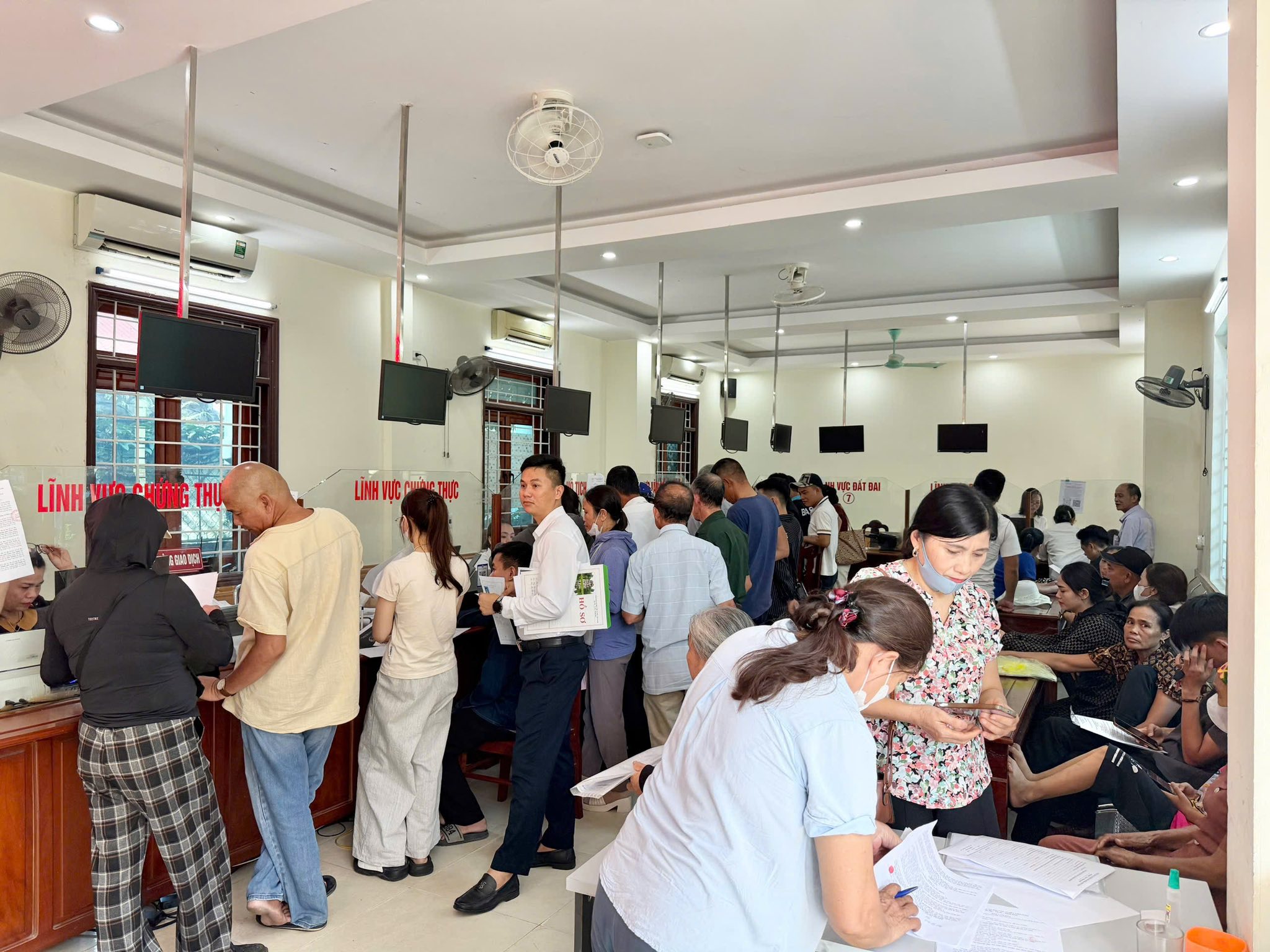 + Bố trí 3 dãy bàn để nhân dân kê khai, viết; bố trí 6 dãy ghế 30 chỗ ngồi để công dân ngồi chờ đến lượt giải quyết, mỗi quầy bố trí 01 ghế để công dân trực tiếp giao dịch với cán bộ tiếp nhận. Trung tâm 4 điều hòa; 6 quạt trần.