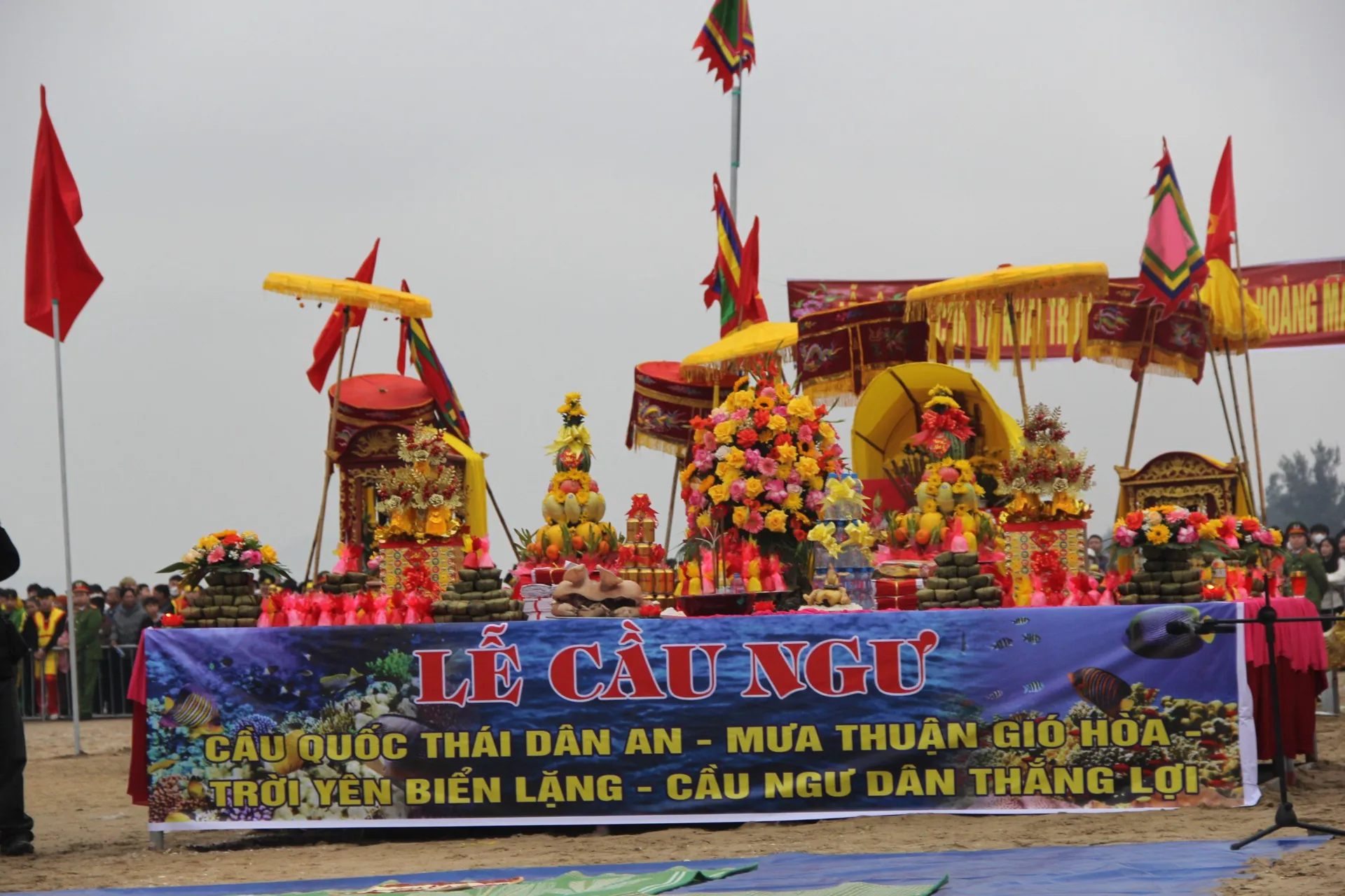 Chiều muộn dần buông trên cửa Lạch Cờn. Lễ hội tan dần. Tiếng trống chiêng nhường chỗ cho tiếng sóng muôn thuở. Dòng Mai Giang lững lờ trôi, phản chiếu ánh hoàng hôn đỏ ối. Những chiếc thuyền tháo cờ hoa để chuẩn bị cho một chuyến ra khơi mưu sinh vào rạng sáng mai.