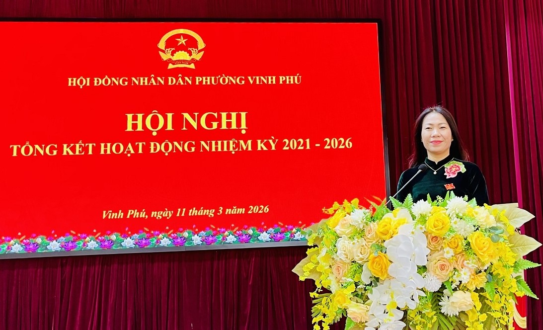 Phát biểu khai mạc Hội nghị, đồng chí Ngô Thị Hường, Bí thư Đảng ủy, Chủ tịch HĐND phường cho biết, từ khi thành lập phường theo mô hình chính quyền địa phương hai cấp đến nay, HĐND phường Vinh Phú đã thực hiện tốt việc gắn kết đại biểu HĐND các xã, phường trước sáp nhập để triển khai thực hiện chức năng, nhiệm vụ của HĐND phường mới. Hoạt động của HĐND phường có nhiều nét nổi bật, quan tâm đến những vấn đề bức xúc trong đời sống dân sinh.