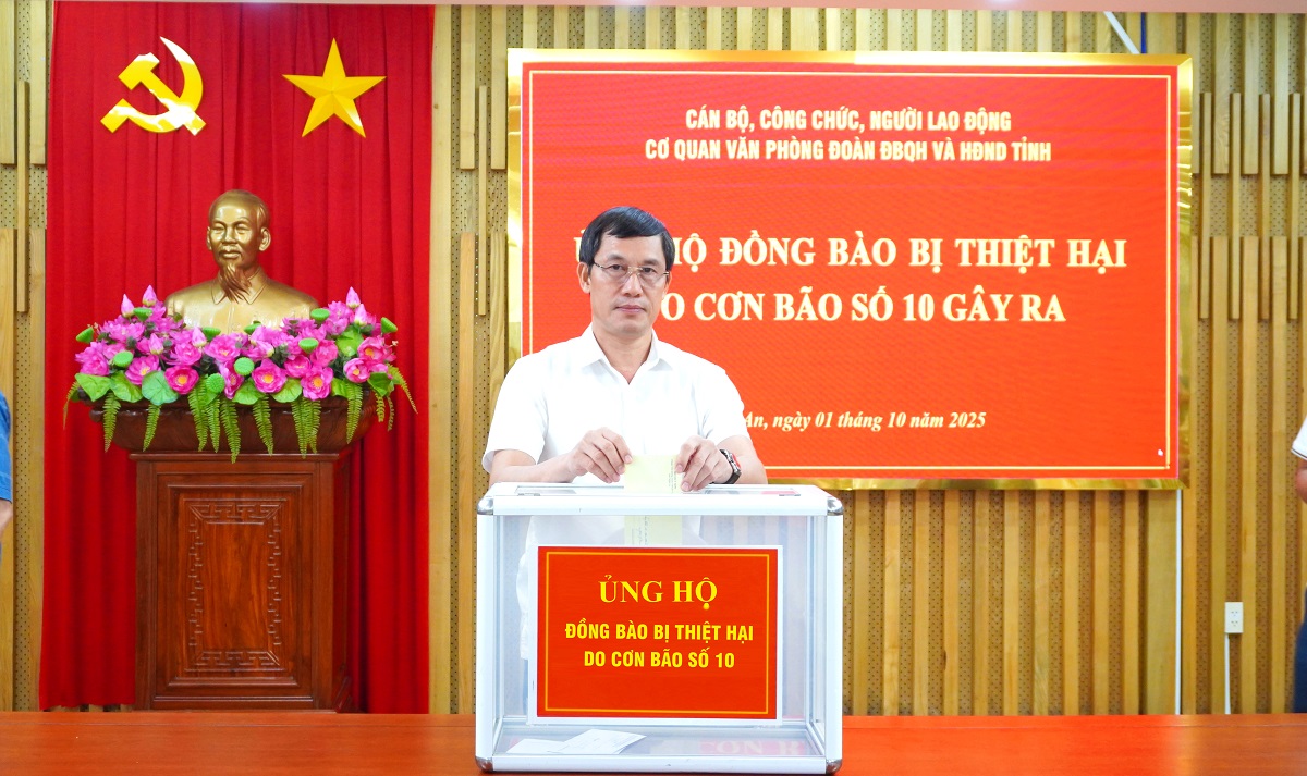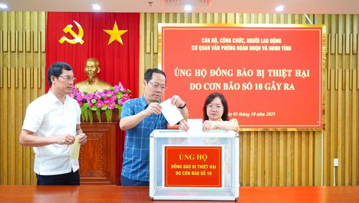Với tinh thần chung tay cùng đồng bào khắc phục hậu quả thiệt hại do bão số 10 gây ra, Thường trực HĐNĐ tỉnh, Lãnh đạo Đoàn ĐBQH tỉnh, Lãnh đạo các Ban HĐND tỉnh, Văn phòng Đoàn ĐBQH và HĐND tỉnh và cán bộ, công chức, người lao động, mỗi người ủng hộ tối thiểu một ngày lương, với tổng số tiền hơn 30 triệu đồng. Toàn bộ số tiền được chuyển đến Ủy ban Mặt trận Tổ quốc Việt Nam tỉnh để kịp thời hỗ trợ các địa phương bị ảnh hưởng.