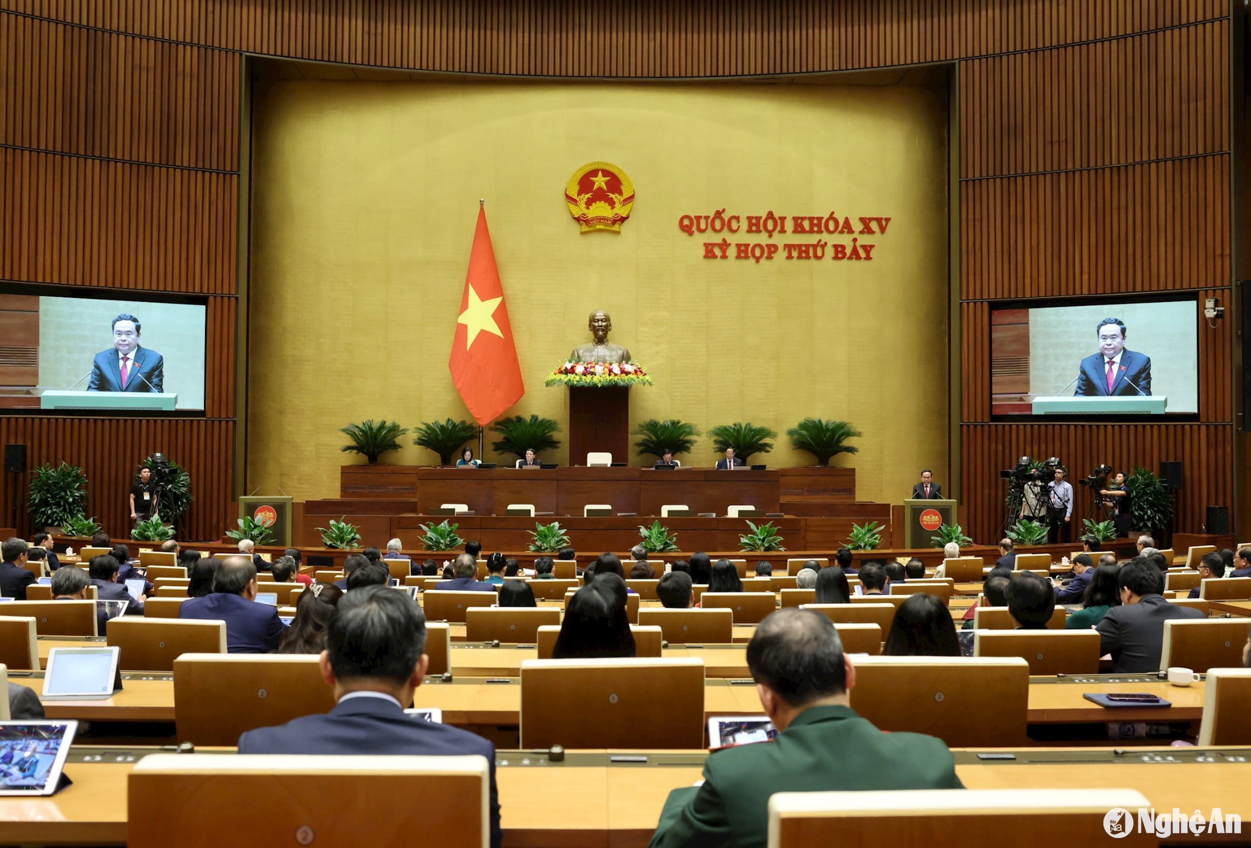 Về công tác lập pháp, với tỷ lệ tán thành cao, Quốc hội đã biểu quyết thông qua 11 luật; xem xét, thông qua 21 nghị quyết; trong đó Quốc hội đã thông qua Nghị quyết về thí điểm bổ sung một số cơ chế, chính sách đặc thù phát triển tỉnh Nghệ An nhằm bổ sung các cơ chế, chính sách khác phù hợp với đặc điểm và tình hình thực tế của tỉnh Nghệ An, phát huy mọi tiềm năng, lợi thế để phát triển tỉnh nhanh và bền vững, phấn đấu xây dựng Nghệ An trở thành tỉnh phát triển khá của cả nước, kinh tế phát triển nhanh và bền vững, mang đậm bản sắc văn hoá Việt Nam và xứ Nghệ; là trung tâm của khu vực Bắc Trung Bộ về thương mại, logistics, y tế, giáo dục và đào tạo, khoa học và công nghệ, công nghiệp và nông nghiệp ứng dụng công nghệ cao.