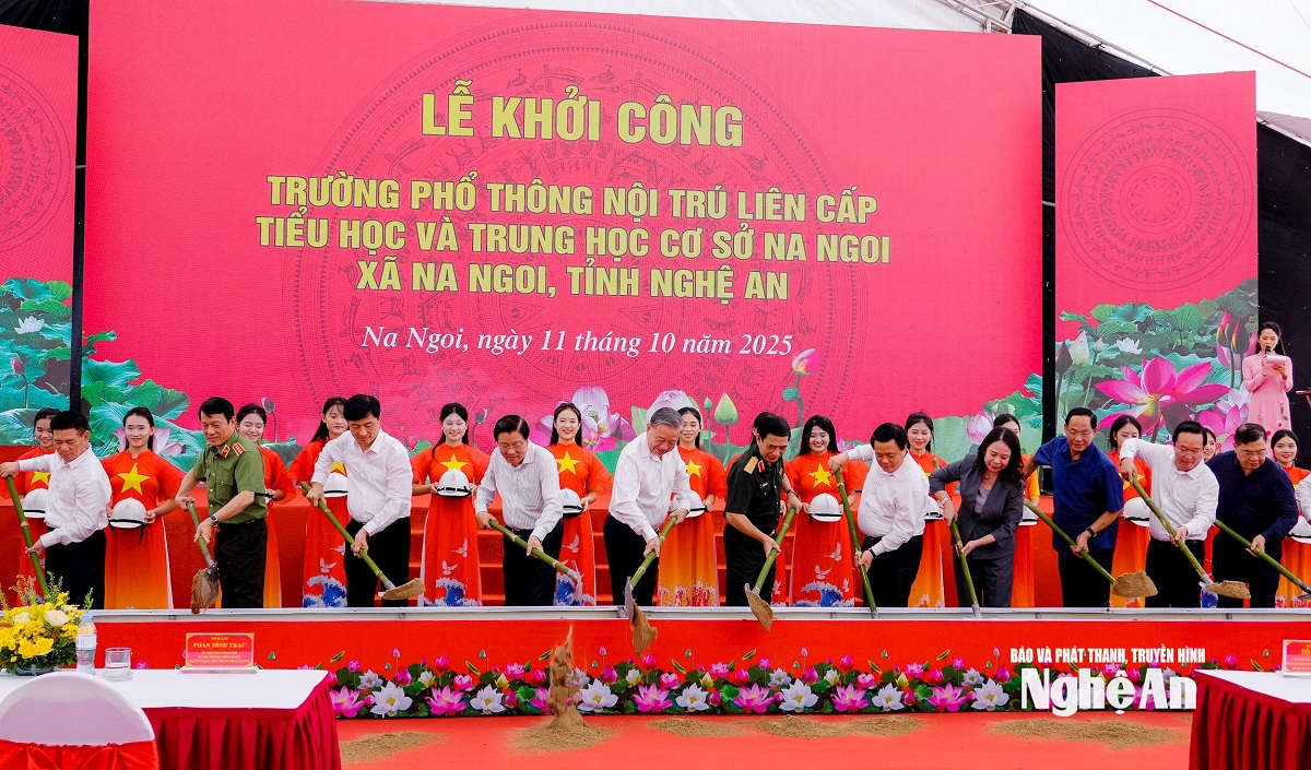 Phát biểu tại buổi lễ, Tổng Bí thư Tô Lâm bày tỏ niềm vui mừng khi được về thăm đồng bào các dân tộc vùng biên giới Nghệ An để dự Lễ khởi công xây dựng Trường liên cấp xã Na Ngoi. Đây là một công trình mang ý nghĩa đặc biệt quan trọng, thể hiện sự quan tâm sâu sắc của Đảng, Nhà nước và Chính phủ đối với sự nghiệp giáo dục, nhất là ở vùng sâu, vùng xa, vùng đồng bào dân tộc thiểu số và biên giới.