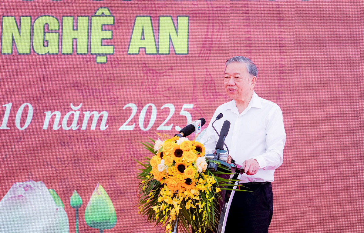 Tổng Bí thư cho biết, Bộ Công an trước đây đã hoàn thành việc xây dựng nhà ở cho nông dân còn khó khăn, xóa nhà tạm ở các xã biên giới. Tỉnh Nghệ An cũng đã làm rất sớm và có kết quả tốt. Sau đó, tỉnh tiếp tục phát động phong trào xây dựng “xã biên giới không có tội phạm, không có ma túy”, góp phần giữ vững an ninh trật tự và nâng cao đời sống nhân dân. Tổng Bí thư cho rằng hiện nay Nghệ An còn 21 xã biên giới; sau khi sáp nhập, địa bàn các xã rộng hơn, nên việc đi lại của học sinh càng xa, vì vậy càng cần sớm xây dựng trường học để các cháu có điều kiện học tập thuận lợi.
