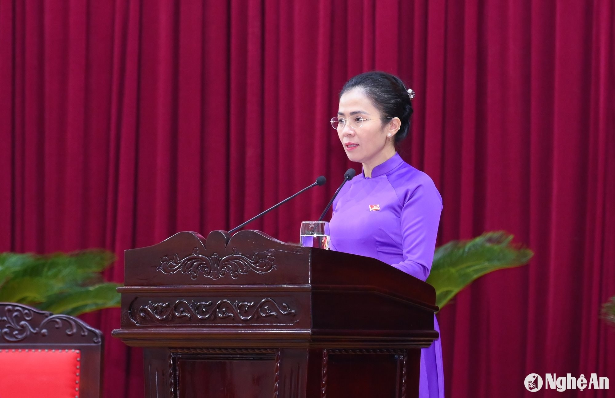 Phiên khai mạc Kỳ họp thứ 25, HĐND tỉnh khóa XVIII, nhiệm kỳ 2021 - 2026, đồng chí Võ Thị Minh Sinh - Ủy viên Ban Thường vụ Tỉnh ủy, Chủ tịch Ủy ban MTTQ tỉnh Nghệ An đã thông báo về ý kiến, kiến nghị của cử tri và nhân dân trong tỉnh và kiến nghị của Ủy ban MTTQ tỉnh đối với HĐND, UBND tỉnh.