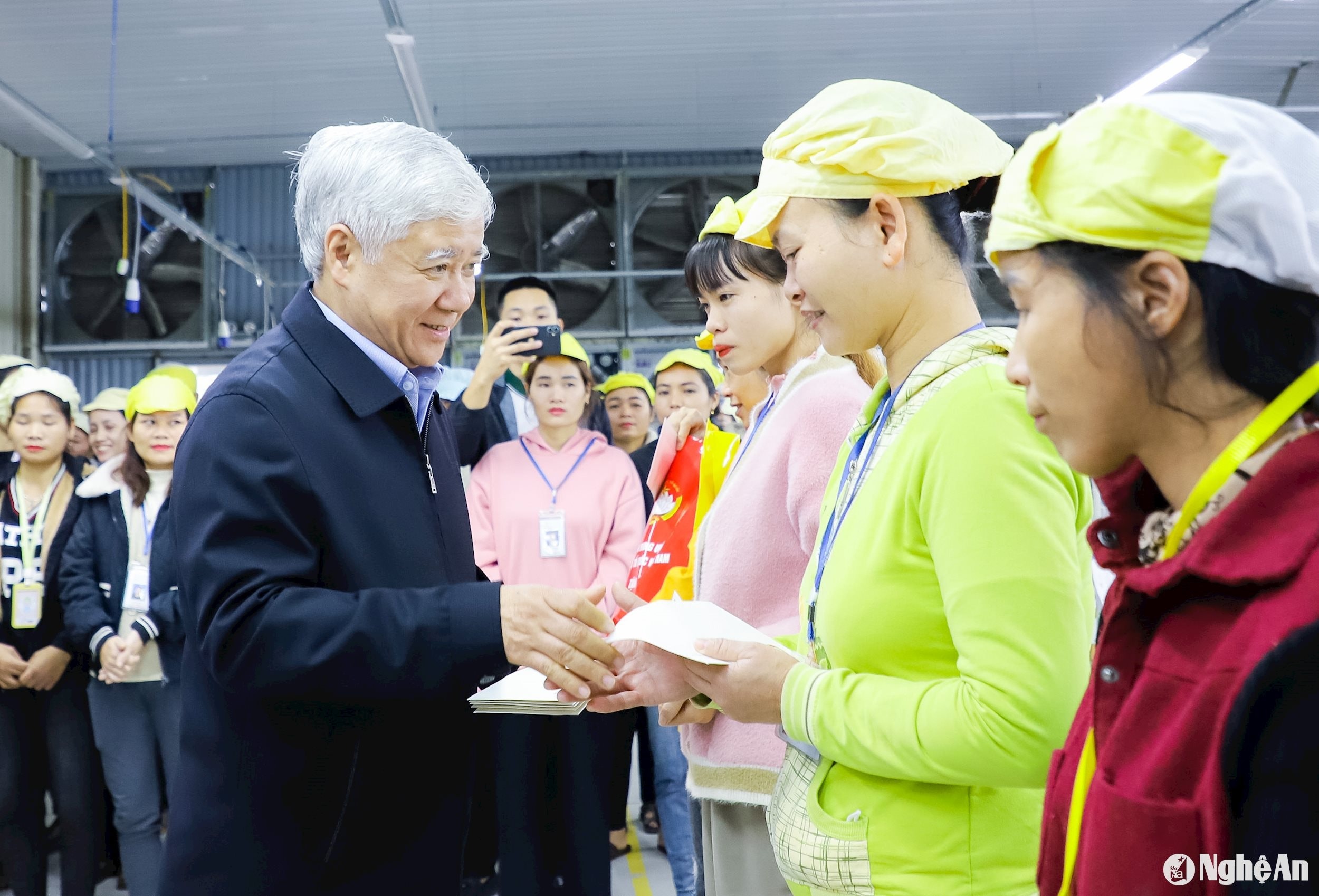 Chủ tịch Ủy ban Trung ương MTTQ Việt Nam Đỗ Văn Chiến thăm, trao quà tặng công nhân Nghệ An