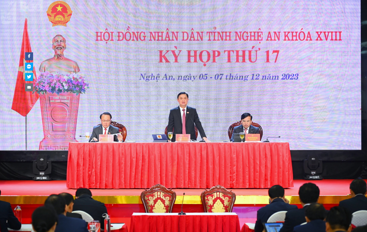 Tỉnh tập trung thực hiện 3 đề án lớn gồm: Đề án mở rộng địa giới và không gian đô thị thành phố Vinh; Đề án mở rộng Khu kinh tế Đông Nam; Đề án sắp xếp đơn vị hành chính cấp huyện, xã giai đoạn 2023-2025; đồng thời tập trung thực hiện 3 dự án chiến lược là: Cảng biển nước sâu Cửa Lò; nâng cấp, mở rộng Cảng hàng không quốc tế Vinh và dự án nhiệt điện khí LNG ở Quỳnh Lập tại thị xã Hoàng Mai; cũng như tiếp tục triển khai sử dụng hiệu quả các nguồn lực để tập trung hoàn thiện các công trình, dự án trọng điểm; thực hiện có hiệu quả 3 chương trình mục tiêu quốc gia; thực hiện có hiệu quả các lĩnh vực văn hóa, giáo dục, y tế, lao động, việc làm; đẩy mạnh cải cách hành chính, cải thiện môi trường đầu tư với phương châm “chọn viện trọng tâm, hành động quyết liệt”.