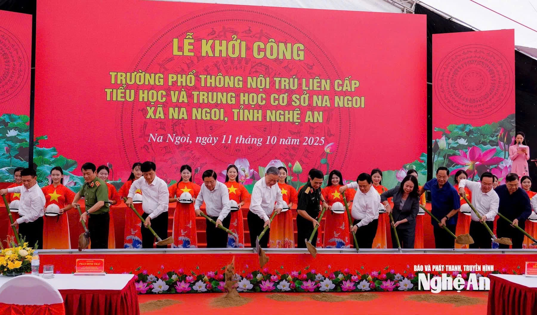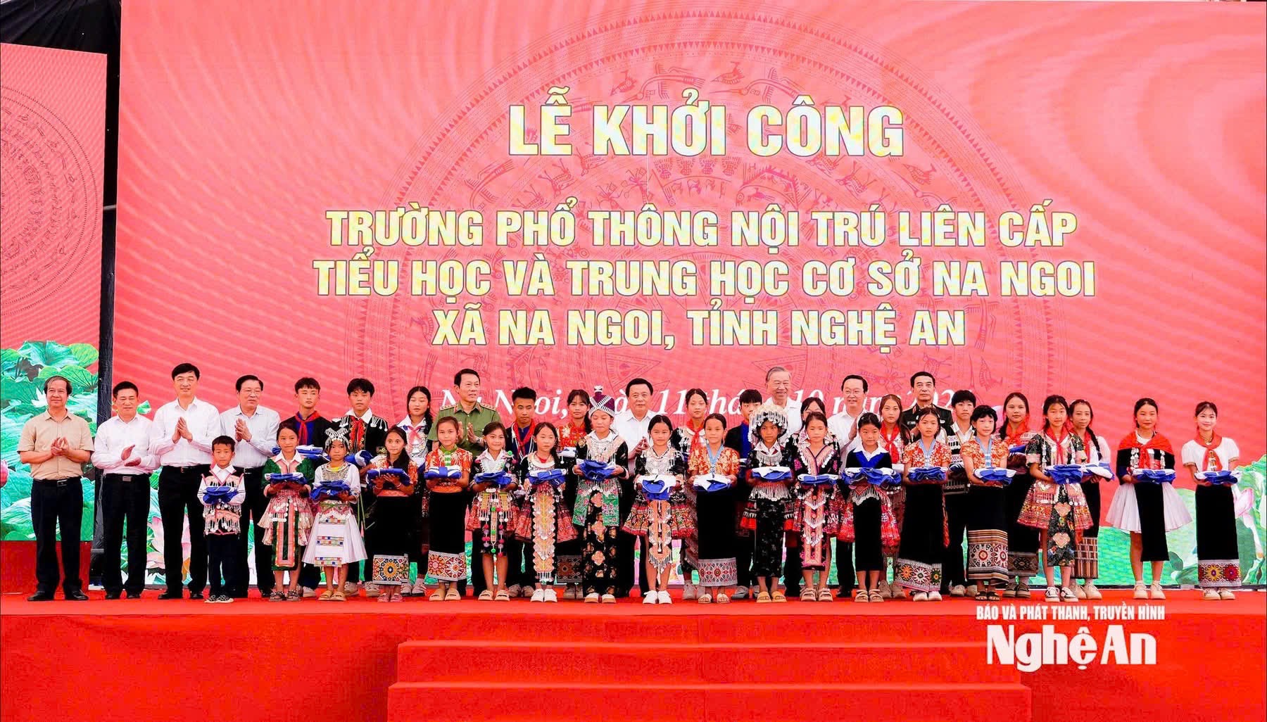 Hôm nay, trong không khí xúc động và tự hào, Đảng bộ, chính quyền và nhân dân tỉnh Nghệ An, các thầy cô giáo, đông đảo các em học sinh và bà con các dân tộc xã Na Ngoi vô cùng vinh dự được đón đồng chí Tổng Bí thư Tô Lâm cùng các đồng chí lãnh đạo Đảng, Nhà nước, lãnh đạo các ban, bộ ngành Trung ương về dự Lễ khởi công xây dựng Trường Phổ thông Nội trú liên cấp Tiểu học và Trung học cơ sở Na Ngoi - một công trình có ý nghĩa đặc biệt nơi vùng biên cương, phên dậu phía Tây của Tổ quốc.