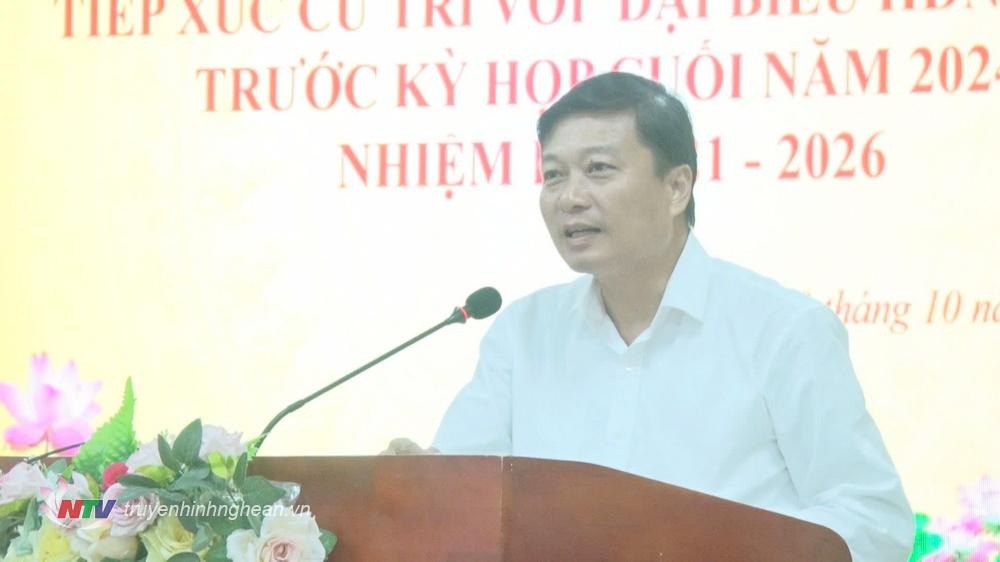 Chiều 30/10, các đại biểu HĐND tỉnh do ông Lê Hồng Vinh – Uỷ viên BTV Tỉnh ủy, Phó Chủ tịch Thường trực UBND tỉnh làm trưởng đoàn đã có buổi tiếp xúc với cử tri xã Long Sơn, huyện Anh Sơn trước kỳ họp HĐND tỉnh cuối năm 2024.