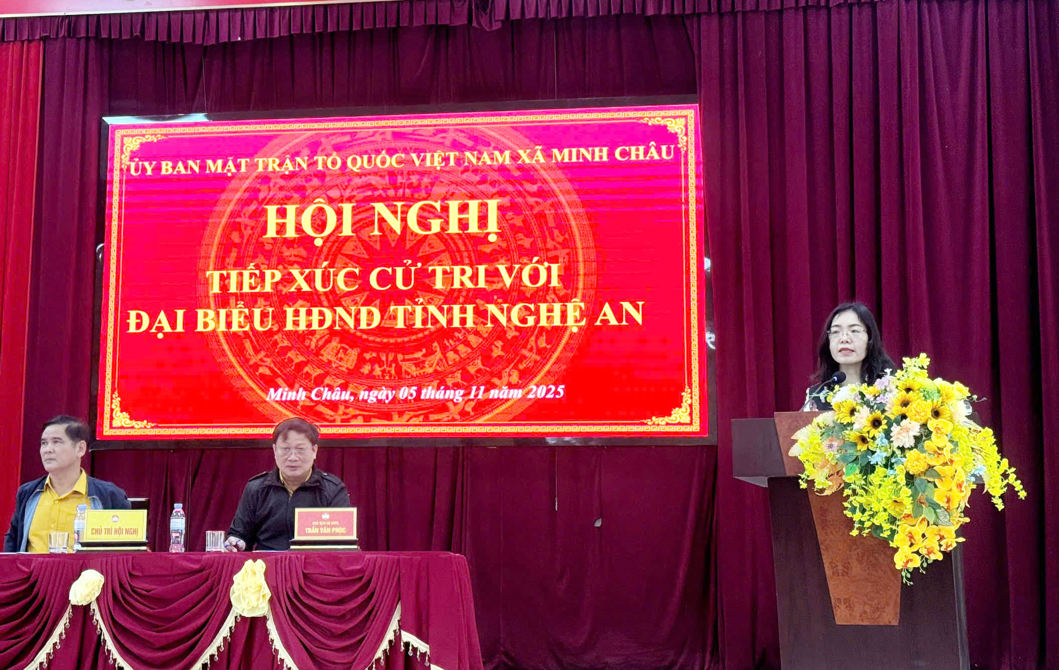 Tại buổi tiếp xúc,16 cử tri đã nêu 38 ý kiến, kiến nghị tập trung vào các lĩnh vực đầu tư, xây dựng, nông nghiệp và môi trường, chế độ chính sách,…Trong đó nhiều cử tri phản ánh tình trạng xuống cấp của các tuyến đường quốc lộ và đường liên thôn, cần quan tâm sửa chữa để người dân thuận tiện đi lại; vấn đề vệ sinh môi trường, xây dựng mương thoát nước, các công trình thủy lợi khác cần được ưu tiên nguồn lực để thực hiện; dự án nhà máy nước sạch khu vực xã Diễn Minh cũ cần được tiếp tục hoàn thành để đưa vào sử dụng.; qan tâm hướng dẫn thủ tục, rút ngắn thời gian cấp đổi giấy chứng nhận quyền sử dụng đất; sử dụng hợp lý các trụ sở xã và các nhà văn hóa xóm sau khi sáp nhập đơn vị hành chính. Các cử tri cũng kiến nghị cần quan tâm chế độ cho những trưởng thôn, khối, xóm có thời gian công tác dài (20–30 năm); giải quyết dứt điểm tranh chấp ranh giới đất rừng giữa xã Minh Châu và Hợp Minh,…