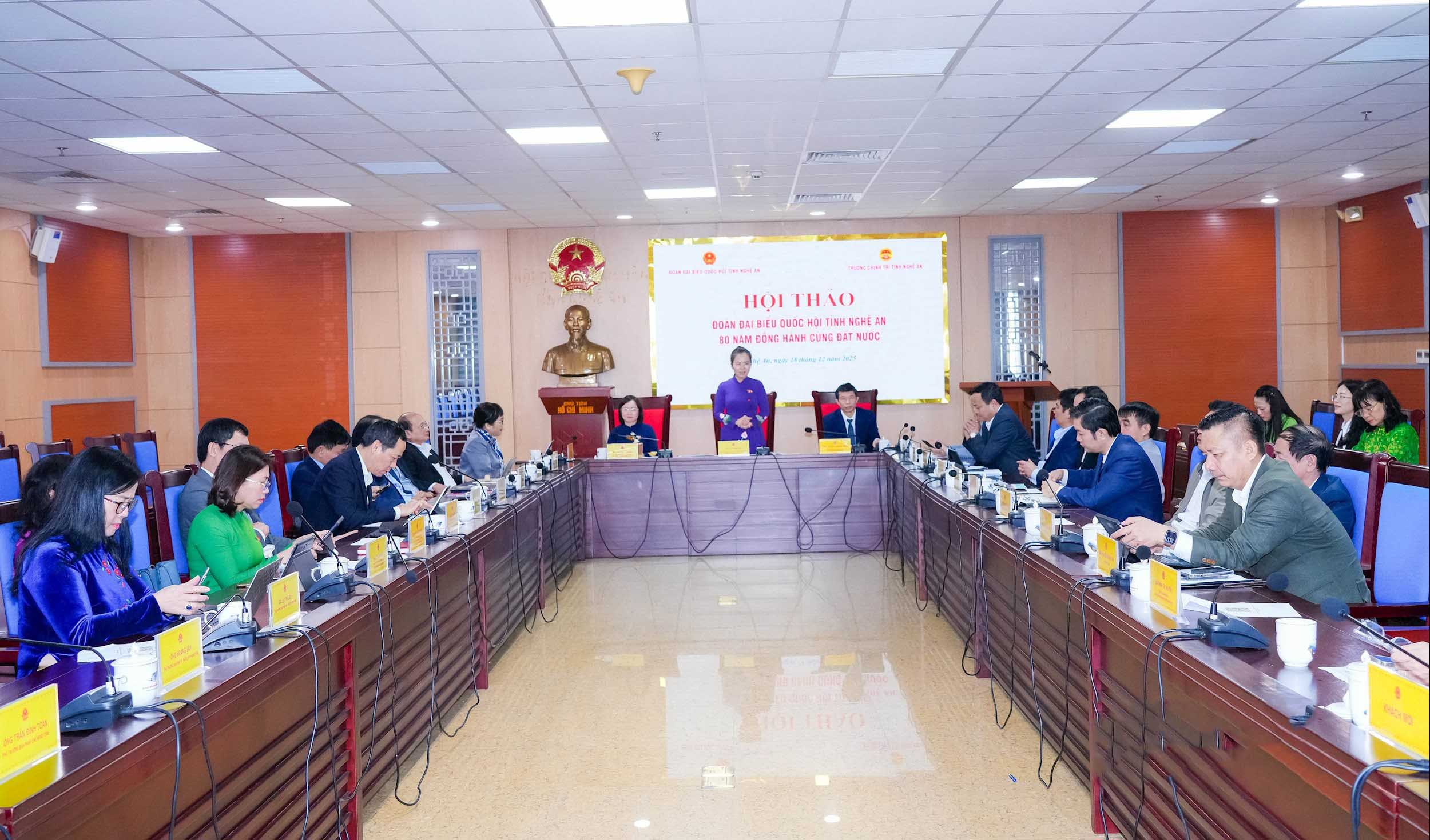 Trong không khí trang trọng, phấn khởi hướng về kỷ niệm 80 năm Tổng tuyển cử đầu tiên bầu Quốc hội Việt Nam, Đoàn Đại biểu Quốc hội tỉnh Nghệ An rất vinh dự được tham dự Hội thảo khoa học “80 năm Tổng tuyển cử đầu tiên - Quốc hội Việt Nam" và trình bày tham luận với chủ đề: “Đoàn Đại biểu Quốc hội tỉnh Nghệ An - 80 năm đổi mới, hành động” với các nội dung như sau: