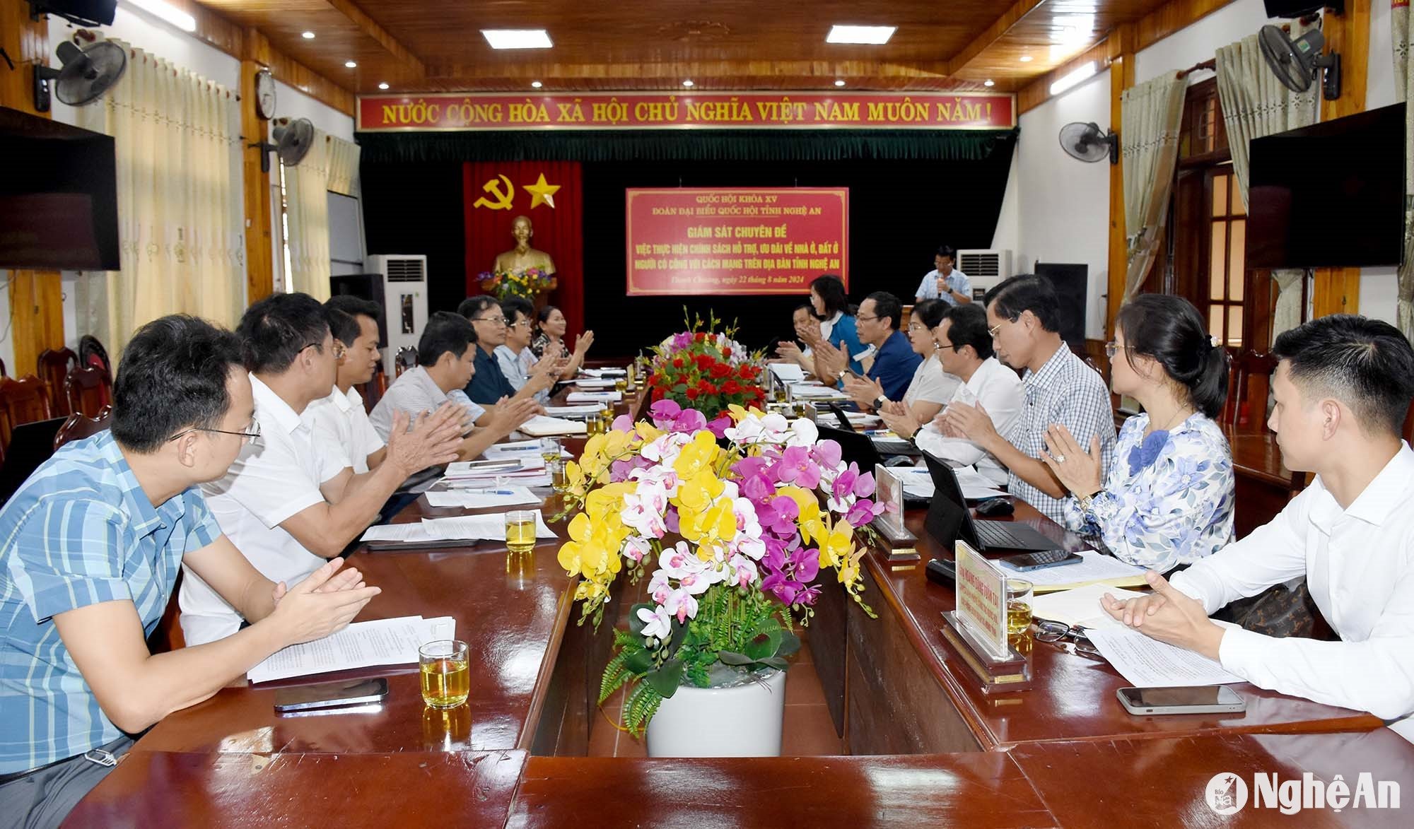 Thay mặt Đoàn giám sát, đồng chí Thái Thị An Chung - Phó Trưởng Đoàn Đại biểu Quốc hội tỉnh ghi nhận sự quan tâm của huyện Thanh Chương trong công tác hỗ trợ nhà ở, đất ở cho người có công với cách mạng. Đồng thời, lưu ý huyện cần tranh thủ phối hợp Hội Hỗ trợ thân nhân liệt sĩ kêu gọi hỗ trợ xây dựng nhà ở cho thân nhân liệt sĩ, góp phần động viên người có công.