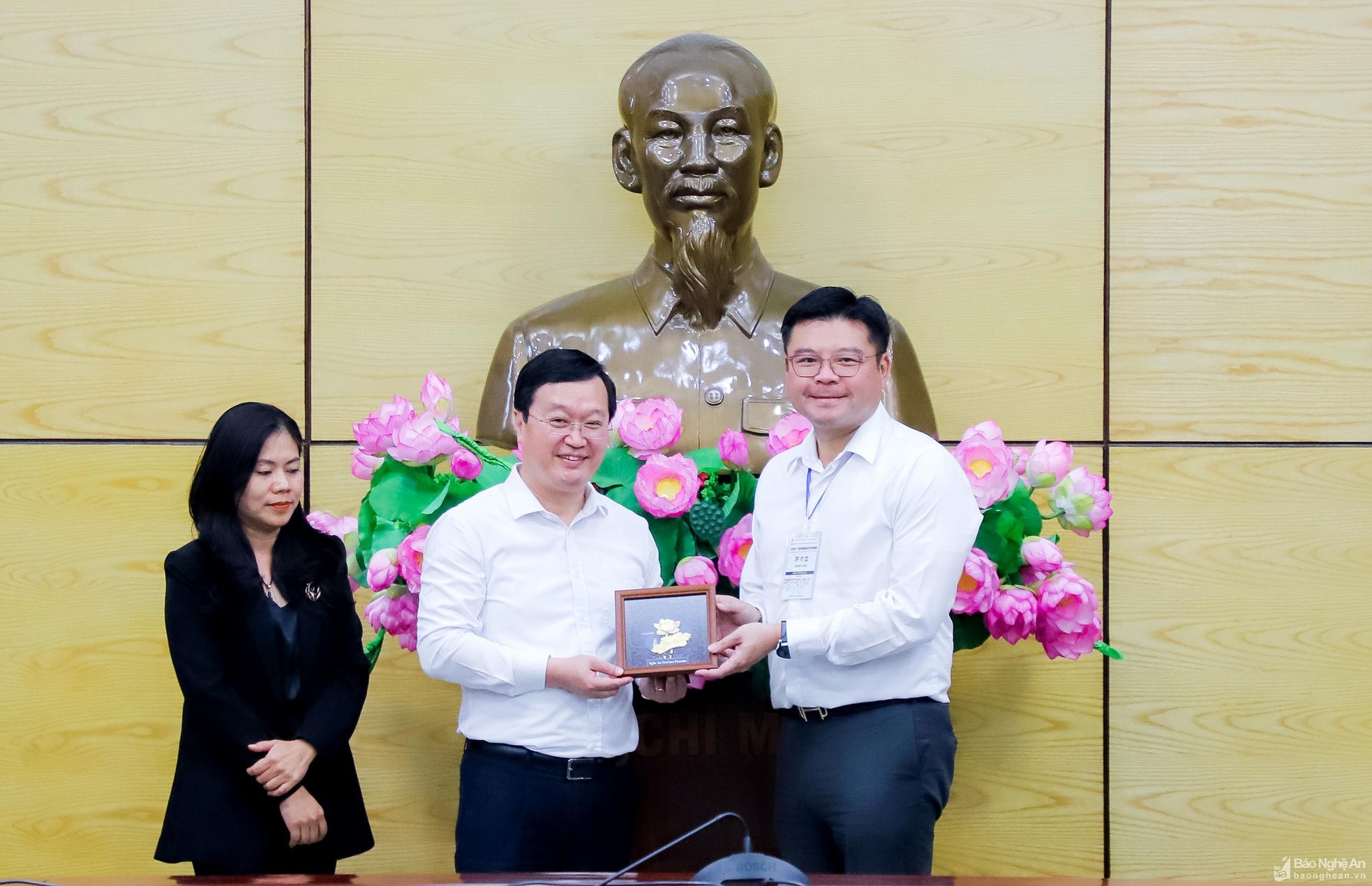 Sáng 27/9, lãnh đạo UBND tỉnh Nghệ An đã tiếp và làm việc với Đoàn doanh nghiệp Điện tử, Điện cơ Đài Loan đến khảo sát môi trường đầu tư kinh doanh của tỉnh.