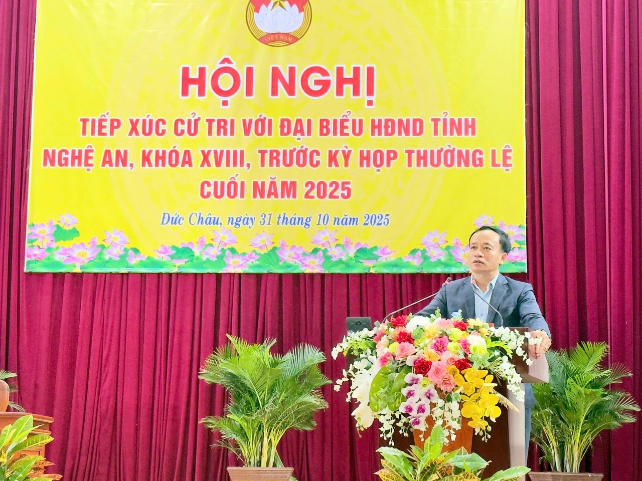 Không khí buổi tiếp xúc diễn ra dân chủ, thẳng thắn; tại xã Đức Châu đã có 10 lượt cử tri tham gia phát biểu, tại xã Quảng Châu đã có 12 lượt cử tri tham gia phát biểu. Cử tri xã Đức Châu, xã Quảng Châu đã bày tỏ tin tưởng vào sự lãnh đạo của Đảng, chính quyền địa phương và HĐND các cấp, ghi nhận sự nỗ lực của cán bộ, công chức trong thời gian đầu vận hành mô hình chính quyền địa phương 02 cấp. Đồng thời phản ánh, kiến nghị nhiều nội dung như: việc thực hiện thu thuế sử dụng đất phi nông nghiệp; việc bố trí đủ cán bộ để đáp ứng nhu cầu giải quyết các thủ tục hành chính về đất đai sau khi sáp nhập xã; tình trạng diện tích đất nông nghiệp bỏ hoang tránh lãng phí; tình trạng ô nhiễm môi trường, ô nhiễm nước sinh hoạt tại Sông Câu Bùng, Khu công nghiệp Diễn Hồng, ô nhiễm bãi rác trên địa bàn xóm Đông Kỷ, xã Đức Châu.