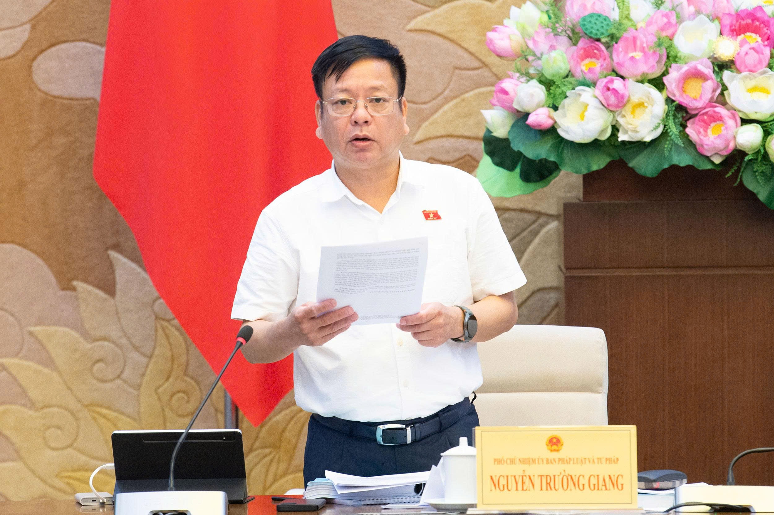 Phó Chủ nhiệm Ủy ban Pháp luật và Tư pháp Nguyễn Trường Giang trình bày báo cáo thẩm tra