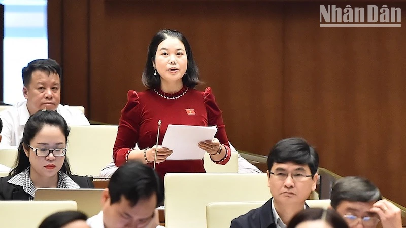 Đại biểu Đỗ Thị Việt Hà (đoàn Bắc Giang) phát biểu ý kiến. (Ảnh: THỦY NGUYÊN) |