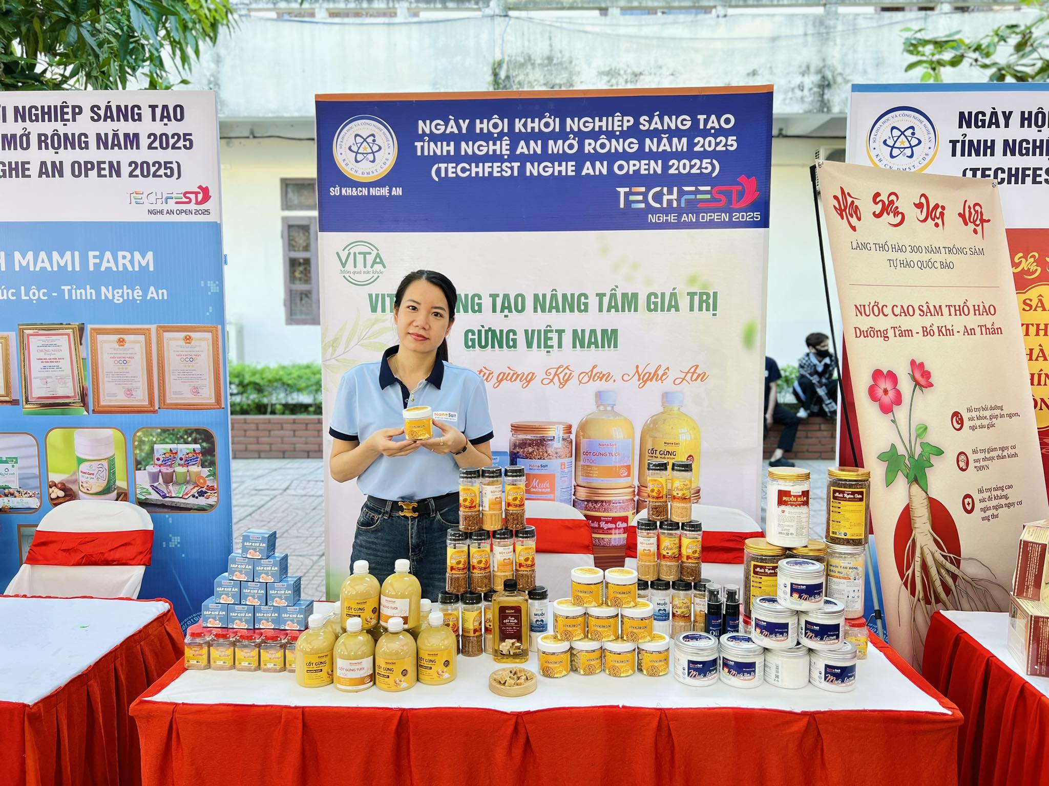 Cũng từ những chuyến đi vùng cao, chị Trần Thị Hồng Thắm ở xã Quỳnh Văn lại mở ra một hành trình khác – hành trình đưa gừng sẻ Kỳ Sơn từ sản vật địa phương trở thành sản phẩm chăm sóc sức khỏe. Trong một lần đến Na Ngoi, chị biết đến loại gừng sẻ do đồng bào Mông trồng trên núi cao, củ nhỏ, cay nồng, thơm đậm, được cấp chỉ dẫn địa lý. Khi nghe bà con than khó tiêu thụ, chị nghĩ ngay đến việc kết hợp gừng sẻ với muối biển sâu NanoSalt – nguồn nguyên liệu quê mình để tạo nên sản phẩm mới mang giá trị cộng hưởng giữa núi và biển. Sau nhiều tháng thử nghiệm, chị Thắm cùng cộng sự cho ra đời các sản phẩm: nước cốt gừng tràm trà muối, nước cốt gừng hà thủ ô muối Epsom ủ tóc, muối gừng ngâm chân, tinh dầu gừng muối Magie xoa bóp... Những sản phẩm tưởng chừng mộc mạc ấy lại nhanh chóng có mặt tại các cửa hàng OCOP trong và ngoài tỉnh, được người tiêu dùng đón nhận tích cực. Với chị Thắm, “mỗi sản phẩm là một câu chuyện kết nối giữa người trồng và người sử dụng, giữa núi và biển, giữa tri thức và bản sắc địa phương”. Từ chỗ chỉ biết bán củ gừng tươi, nay bà con vùng cao Kỳ Sơn đã trở thành người cung ứng nguyên liệu cho chuỗi sản xuất giá trị cao hơn. Mỗi cân gừng sẻ không chỉ mang lại thu nhập, mà còn góp phần vào hành trình khẳng định thương hiệu sản phẩm địa phương.