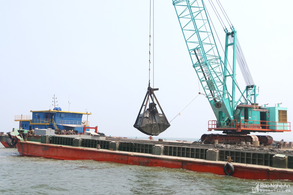 Tàu cuốc nạo vét cửa lạch cảng Cửa Lò để giữ độ sâu trên dưới 9 m tạo điều kiện cho tàu có tải trọng lớn ra vào thuận lợi. Ảnh: Nguyễn Hải