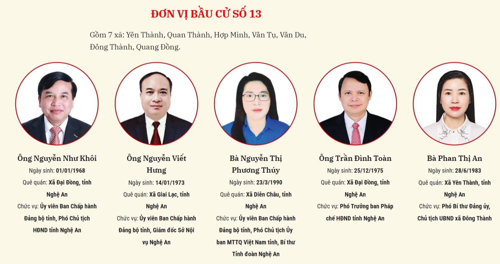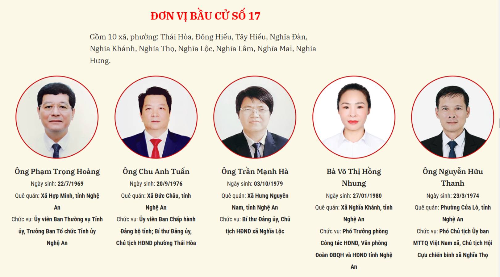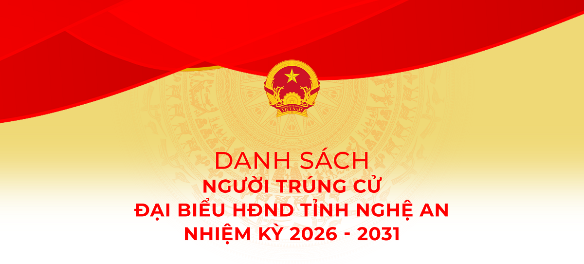 Ngày 19/3, Ủy ban bầu cử tỉnh Nghệ An ban hành Nghị quyết số 139/NQ-UBBC về việc xác nhận tư cách đại biểu Hội đồng nhân dân nhiệm kỳ 2026-2031. Trân trọng giới thiệu danh sách người trúng cử đại biểu Hội đồng Nhân dân tỉnh Nghệ An nhiệm kỳ 2026 - 2031.