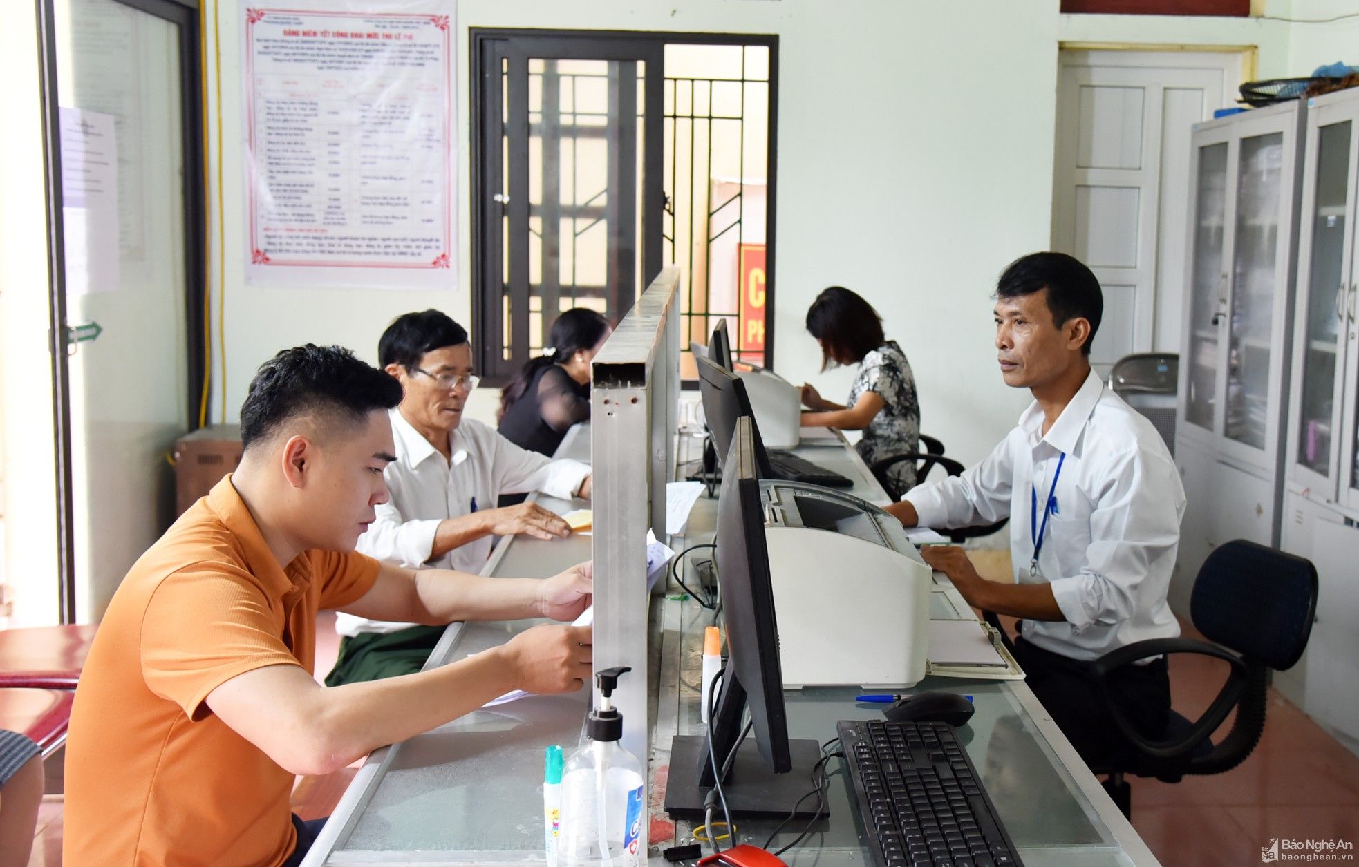 Cán bộ phường Quỳnh Thiện (thị xã Hoàng Mai) giải quyết thủ tục hành chính cho người dân. Ảnh: Thanh Lê