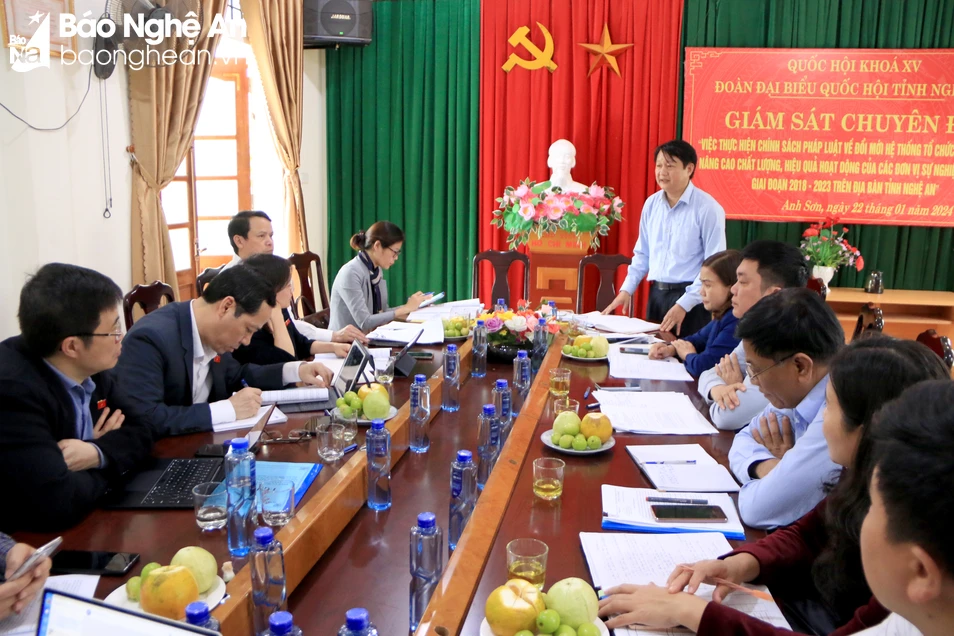Kết thúc cuộc làm việc, ông Trần Nhật Minh - Ủy viên Ủy ban Pháp luật của Quốc hội, đại biểu Quốc hội chuyên trách, đề nghị phía Trung tâm Dịch vụ nông nghiệp huyện Anh Sơn hoàn tất báo cáo theo chuyên đề. Trên cơ sở đó, đoàn giám sát sẽ tổng hợp và có báo cáo kết quả để trình các cơ quan có thẩm quyền nghiên cứu, giải quyết.