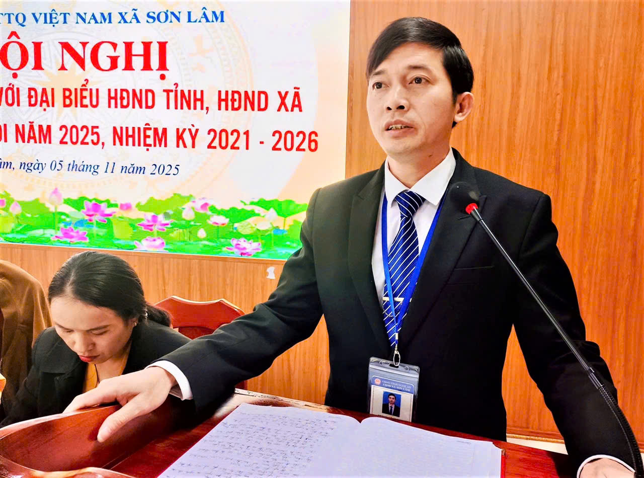 Phát biểu tại hội nghị, ông Nguyễn Nam Đình – Phó Chủ tịch Thường trực HĐND tỉnh ghi nhận và biểu dương tinh thần dân chủ, trách nhiệm của cử tri xã Sơn Lâm. Ông nhấn mạnh, HĐND các cấp luôn coi trọng việc lắng nghe ý kiến từ cơ sở, xem đây là kênh thông tin quan trọng để phản ánh tâm tư, nguyện vọng của Nhân dân đến các cơ quan chức năng. Ông đề nghị cấp ủy, chính quyền địa phương tiếp tục tập trung tháo gỡ khó khăn trong phát triển kinh tế nông nghiệp; hoàn thiện hệ thống giao thông; tăng cường công tác quản lý đất đai và giải phóng mặt bằng; quan tâm hơn đến chính sách hỗ trợ đồng bào tái định cư, phát triển sinh kế, nâng cao chất lượng giáo dục và y tế, thực hiện tốt các chương trình an sinh xã hội.