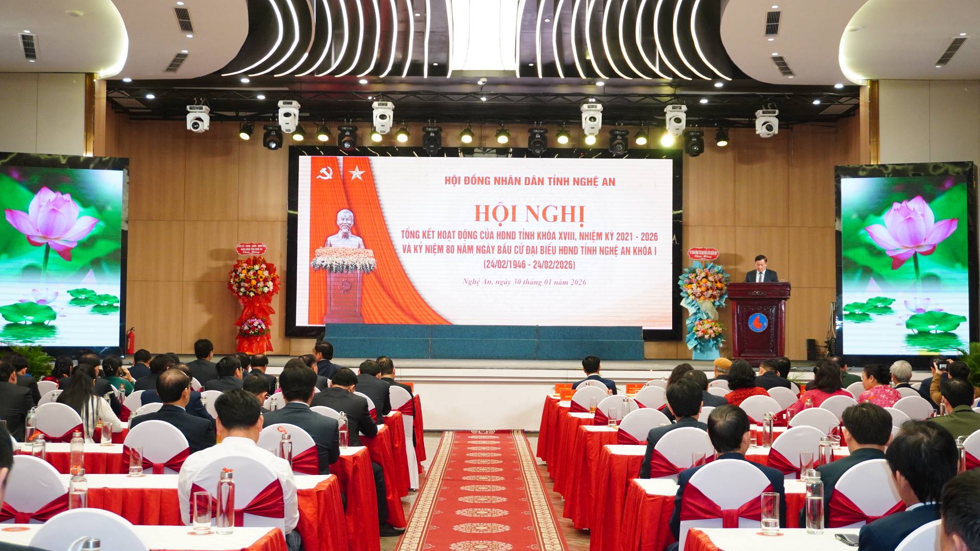 Hôm nay, tôi và các đồng chí trong Thường trực, Ban Thường vụ Tỉnh uỷ tỉnh rất vui mừng tham dự Hội nghị Tổng kết hoạt động của Hội đồng nhân dân tỉnh khóa 18, nhiệm kỳ 2021 – 2026 và Kỷ niệm 80 năm Ngày bầu cử đại biểu Hội đồng nhân dân tỉnh khóa I (24/02/1946 – 24/02/2026).