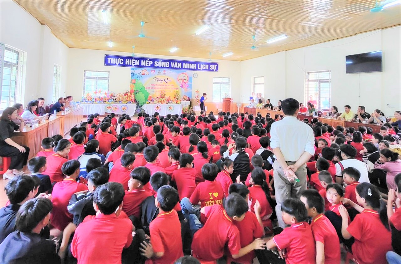 Tại buổi lễ này, Nhóm thiện nguyện đã trao 370 suất quà cho các em học sinh gồm áo ấm đồng phục, bút, vở, tiền mặt; 80 phần quà cho nhà trường bao gồm quạt tích điện, mũ len và 18 bộ áo dài cho giáo viên nữ…với tổng giá trị gần 100 triệu đồng.