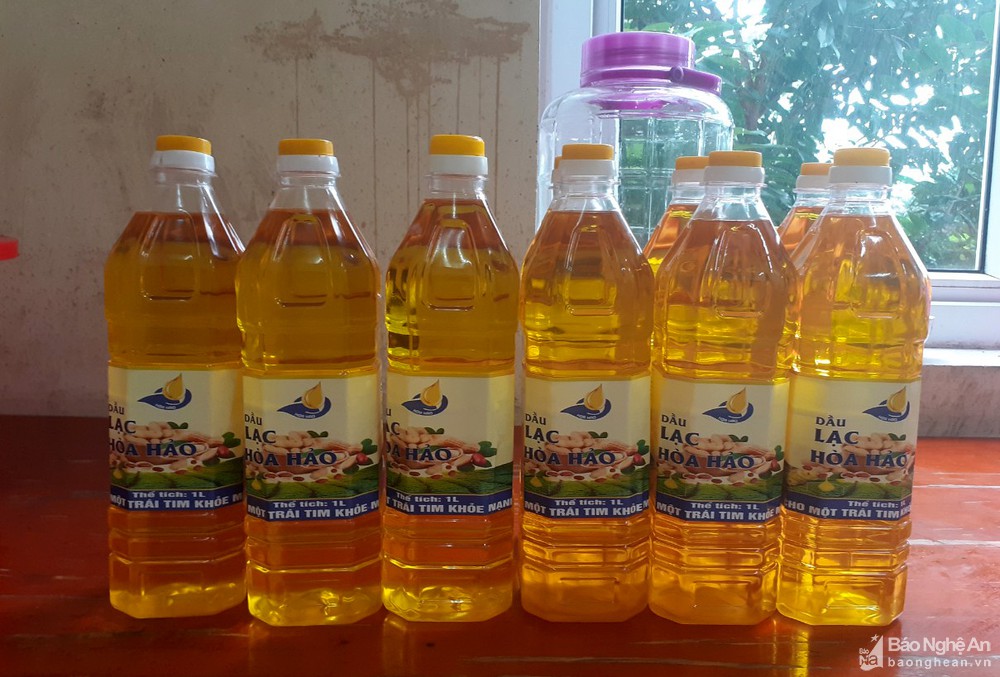 Sản phẩm dầu lạc Hòa Hảo trên địa bàn xã Nghĩa Hoàn đạt "3 sao" OCOP năm 2021. Ảnh: XH