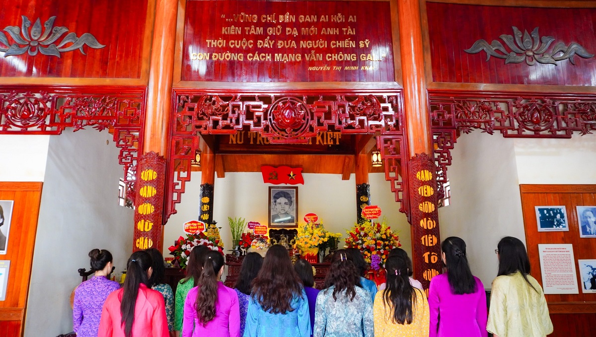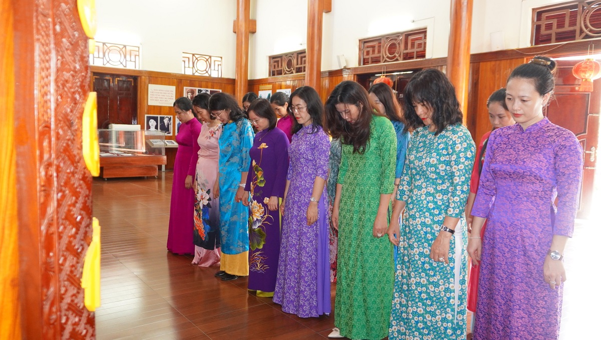 Dâng hoa, dâng hương trước anh linh đồng chí Nguyễn Thị Minh Khai, các nữ cán bộ, công chức, người lao động Văn phòng Đoàn ĐBQH và HĐND tỉnh bày tỏ tấm lòng thành kính đối với công lao to lớn của đồng chí đối với sự nghiệp cách mạng Việt Nam.